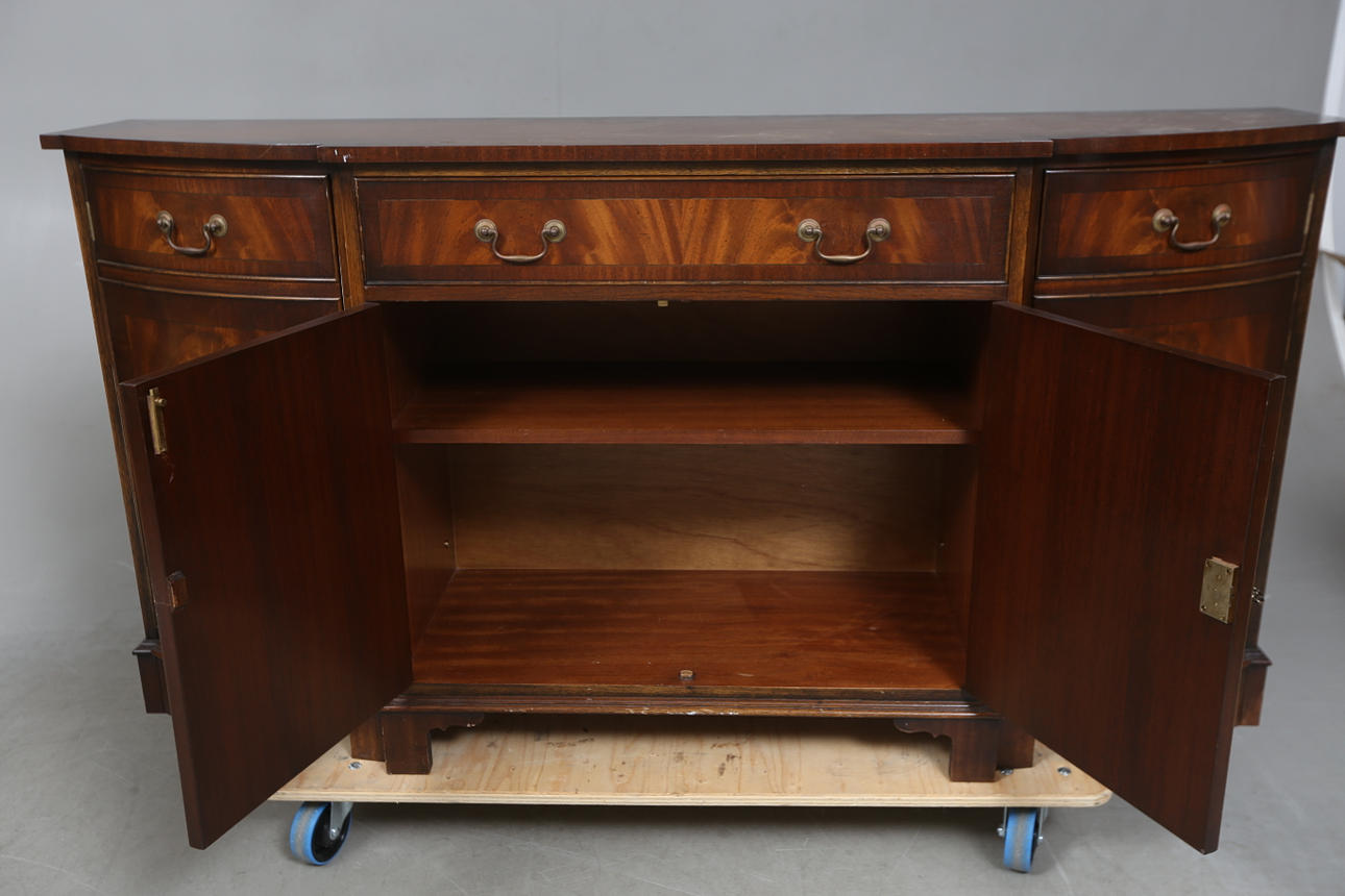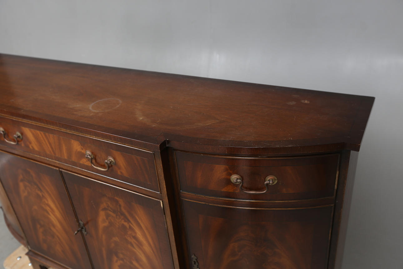 Ridser, pletter, slagmærker, nogle overfladeskader. Lister med skader. Sokkel med finerskader.
