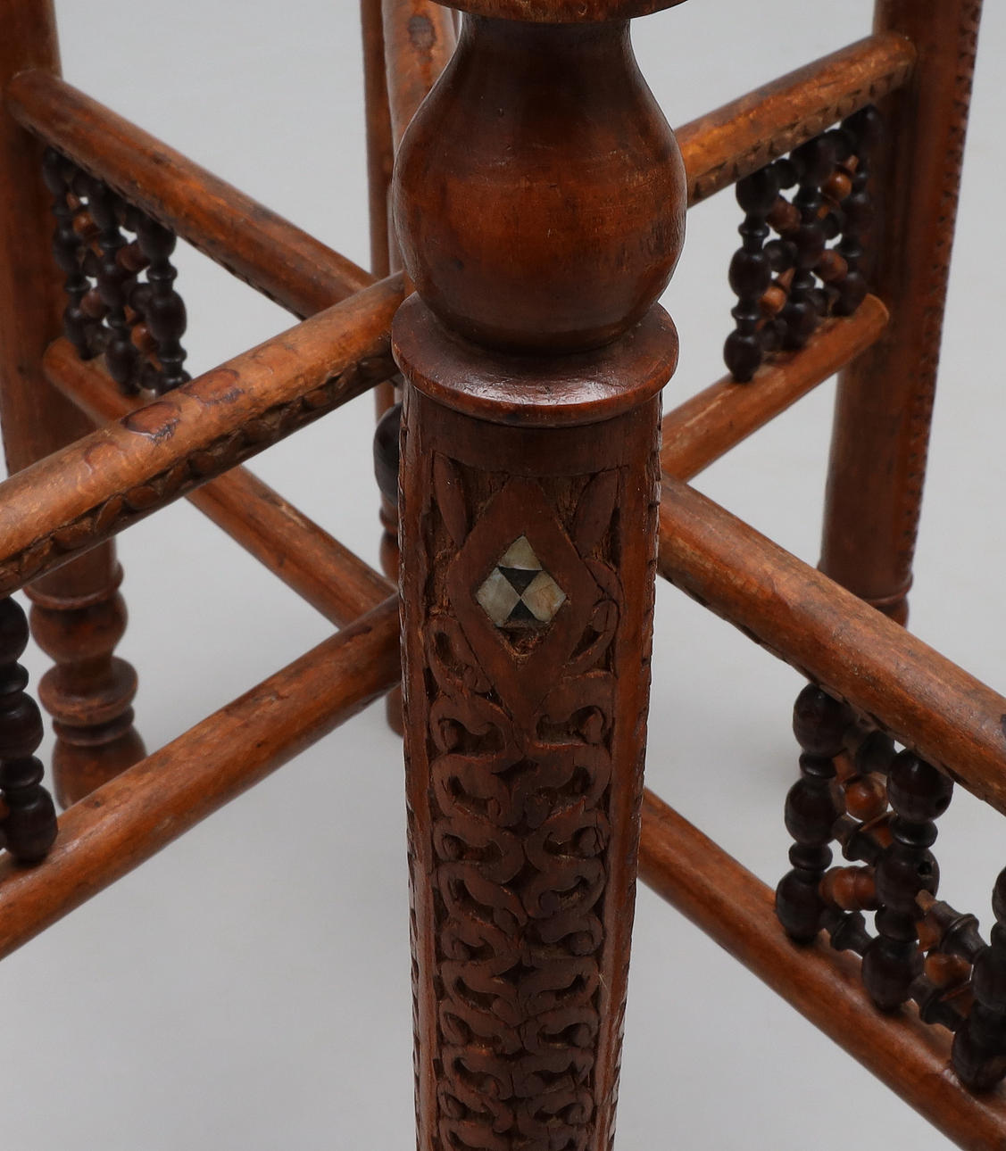 Brugsslitage, en dekoration med trækugler mangler på det ene ben.