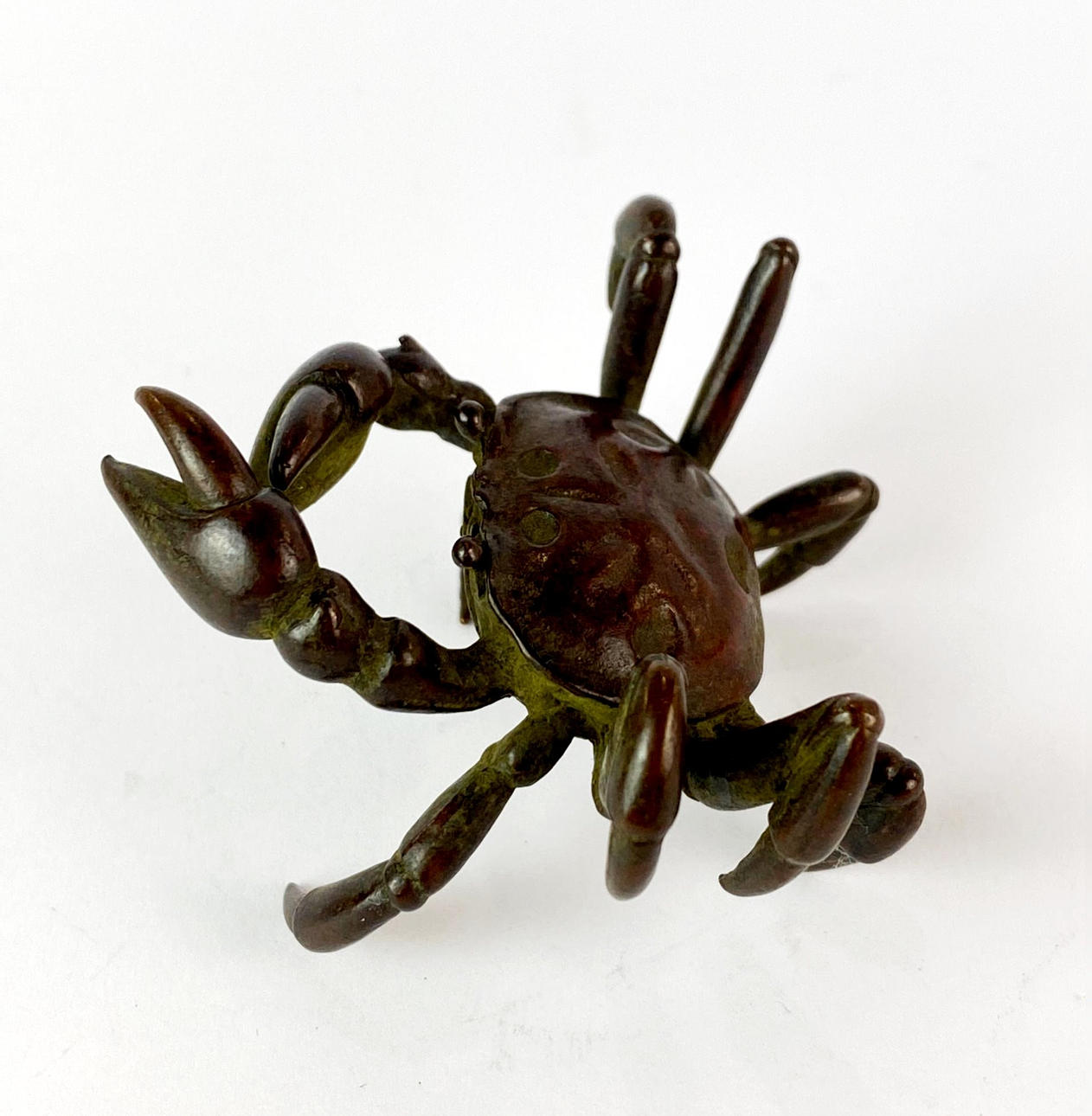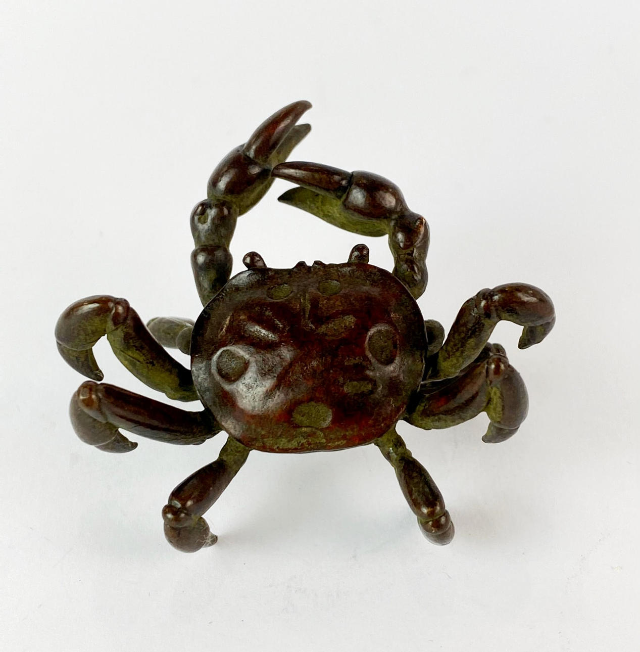 En signeret japansk bronzemodel af en krabbe, B. 6 cm. H. 3,5 cm.