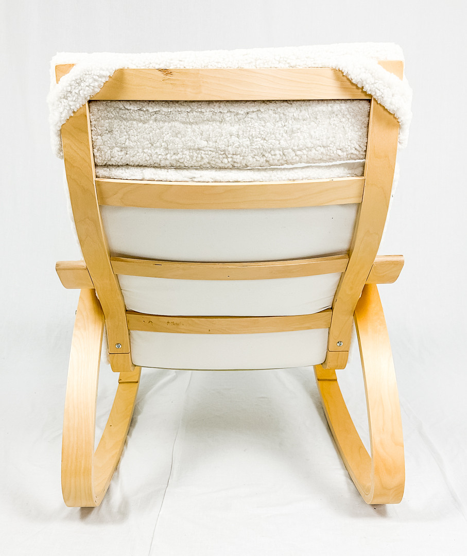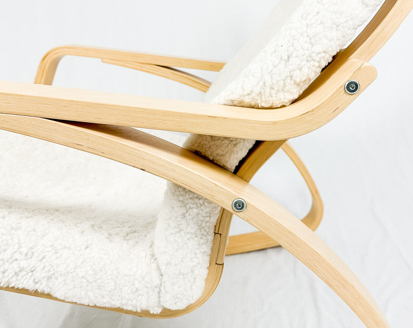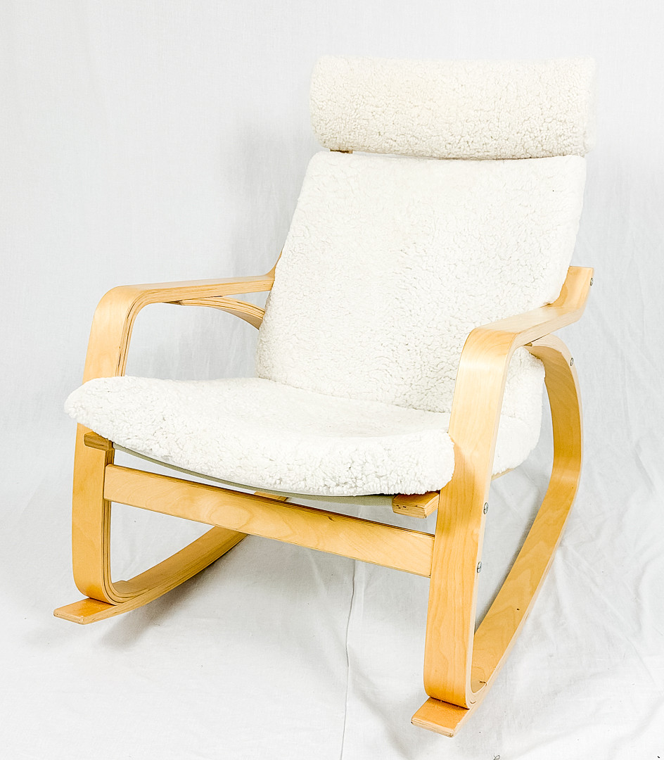 3086355. GYNGESTOL, bøjet træ, fåreskind, Ikea.