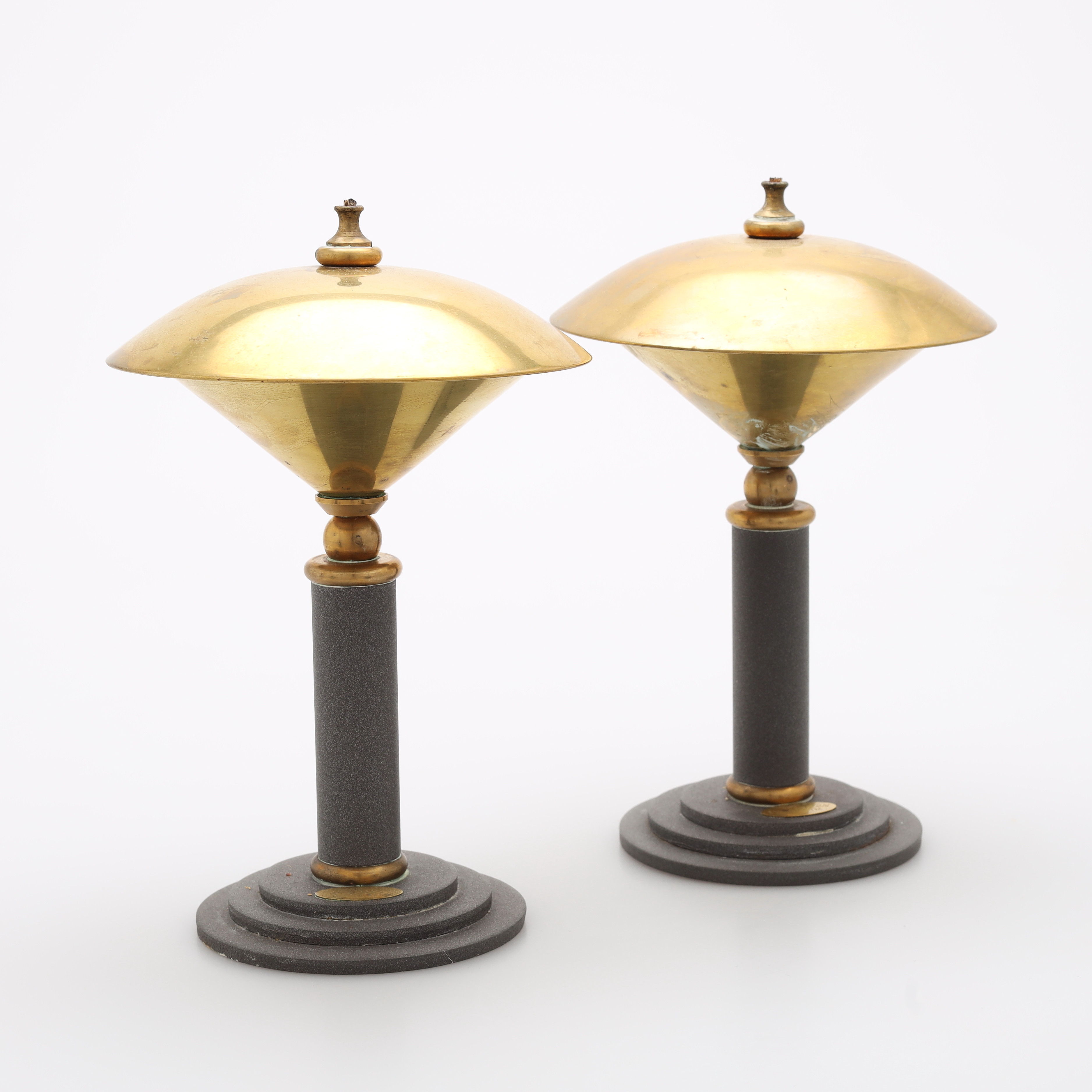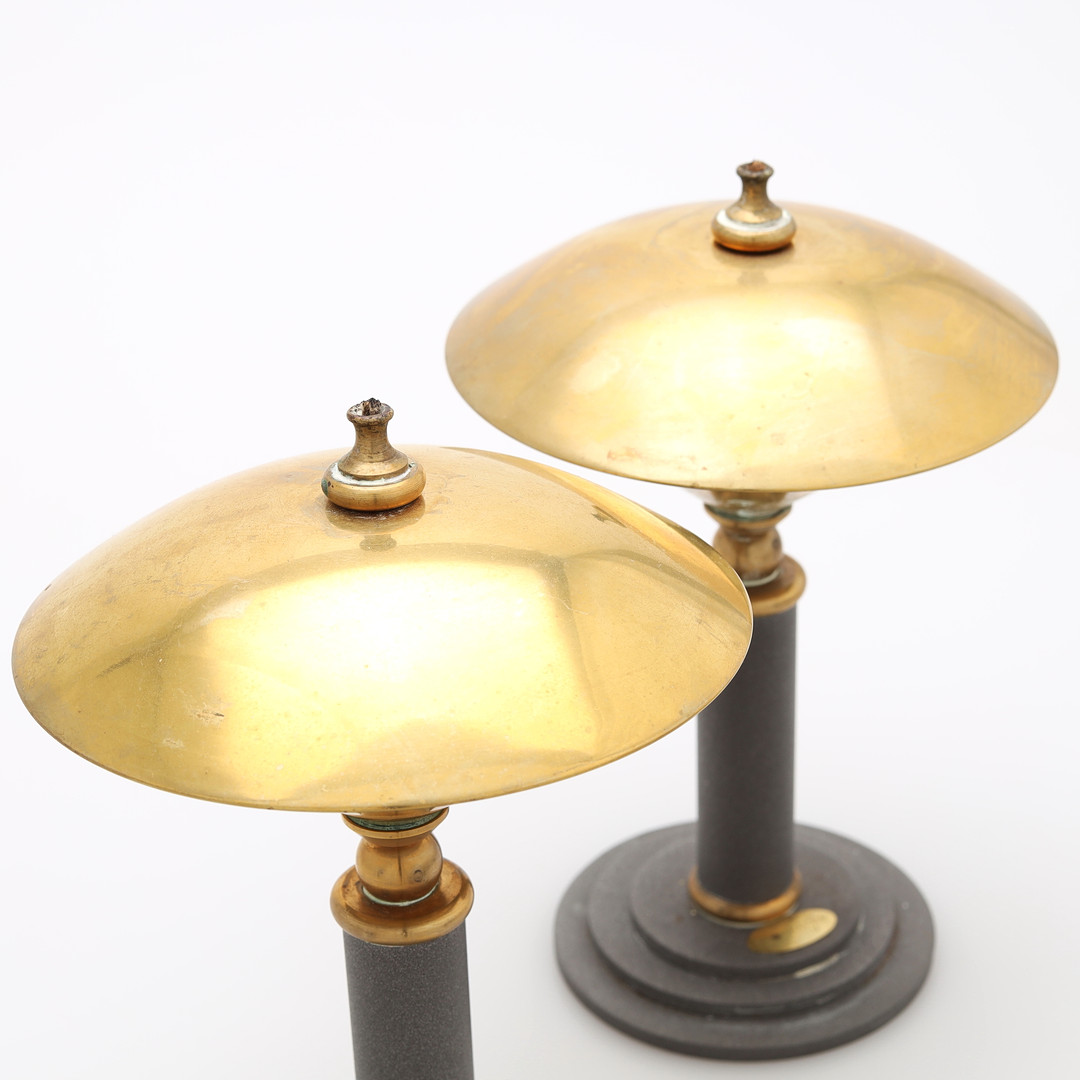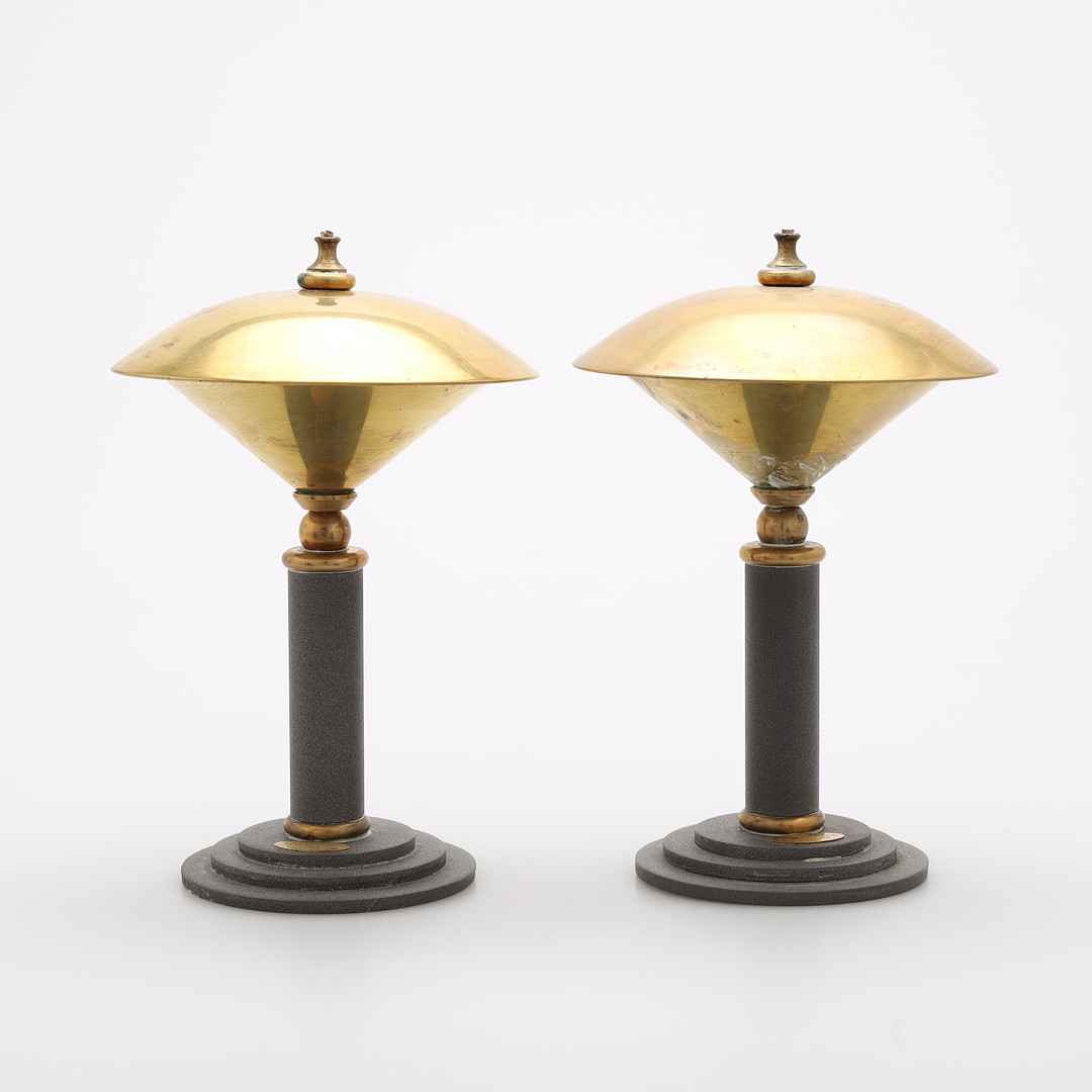 3095698. OLIELAMPER, et par, metal, "Two Faces", 1900/2000-tallet.
