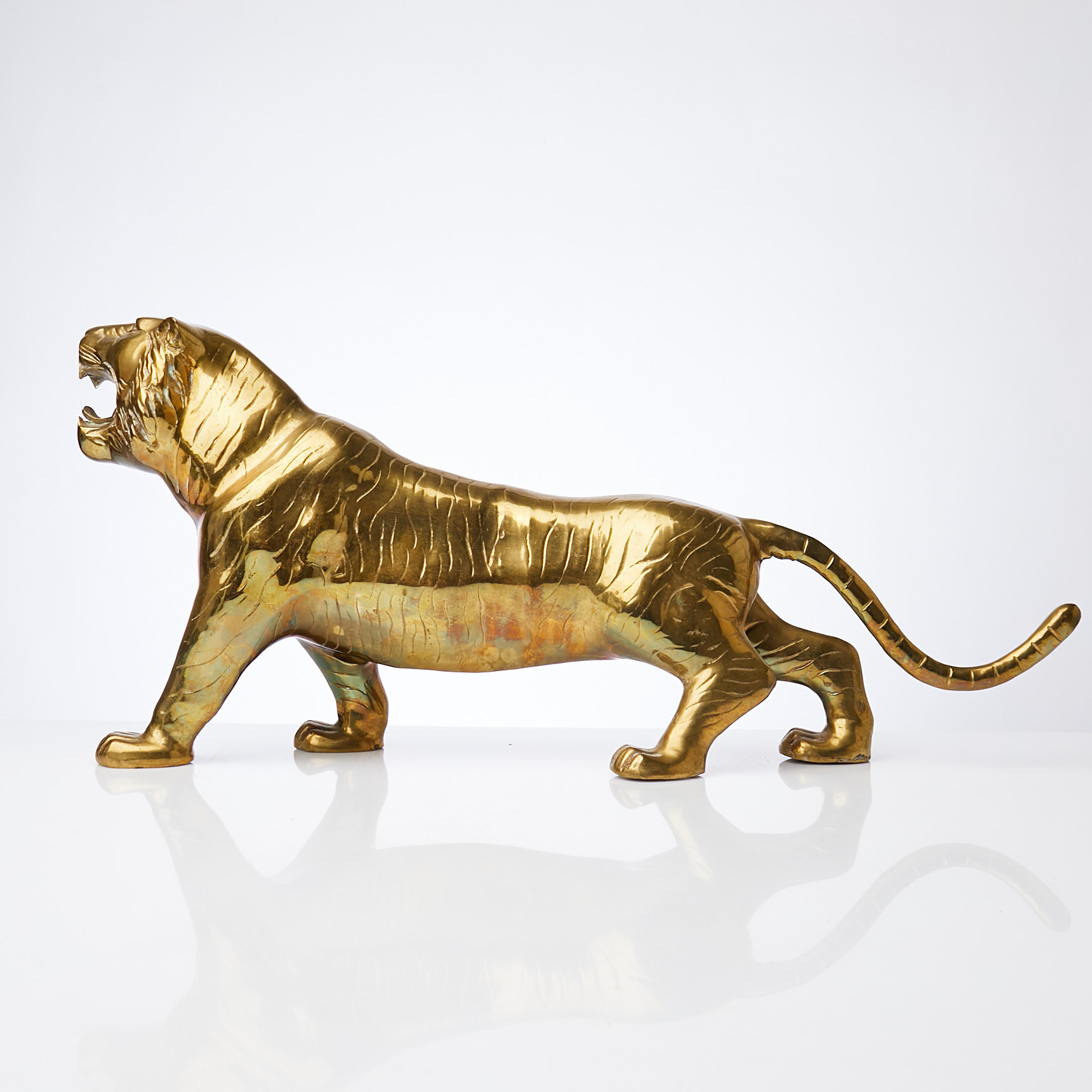 3097545. SKULPTUR, tiger, messing, 20. århundrede.