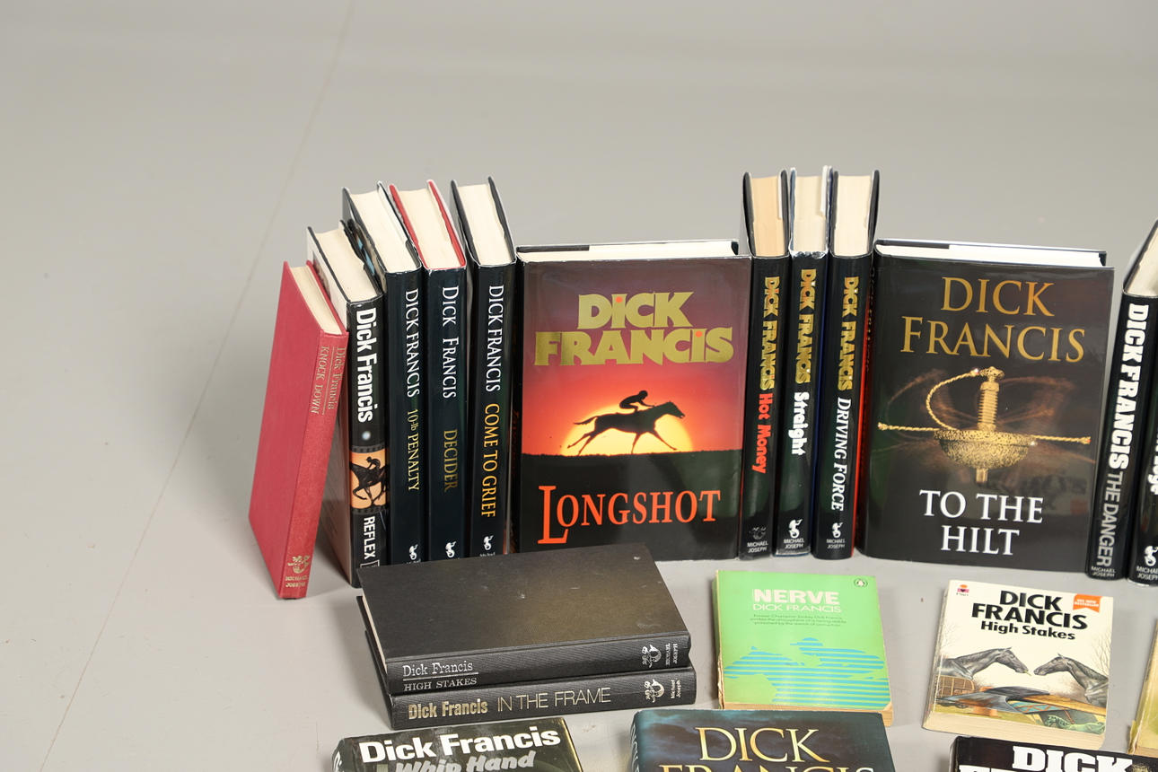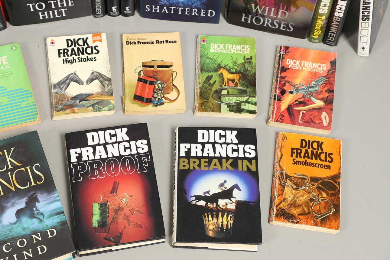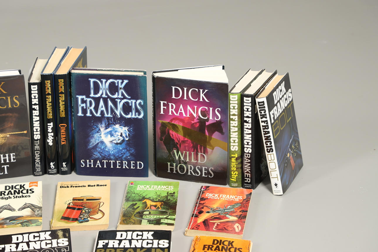 22 forskellige hardbook-bøger, 20 med deres smudsomslag, inklusive Bolt, Twice Shy, Proof, Hot Money, Longshot og mange flere. Også med diverse bløde rygbøger.