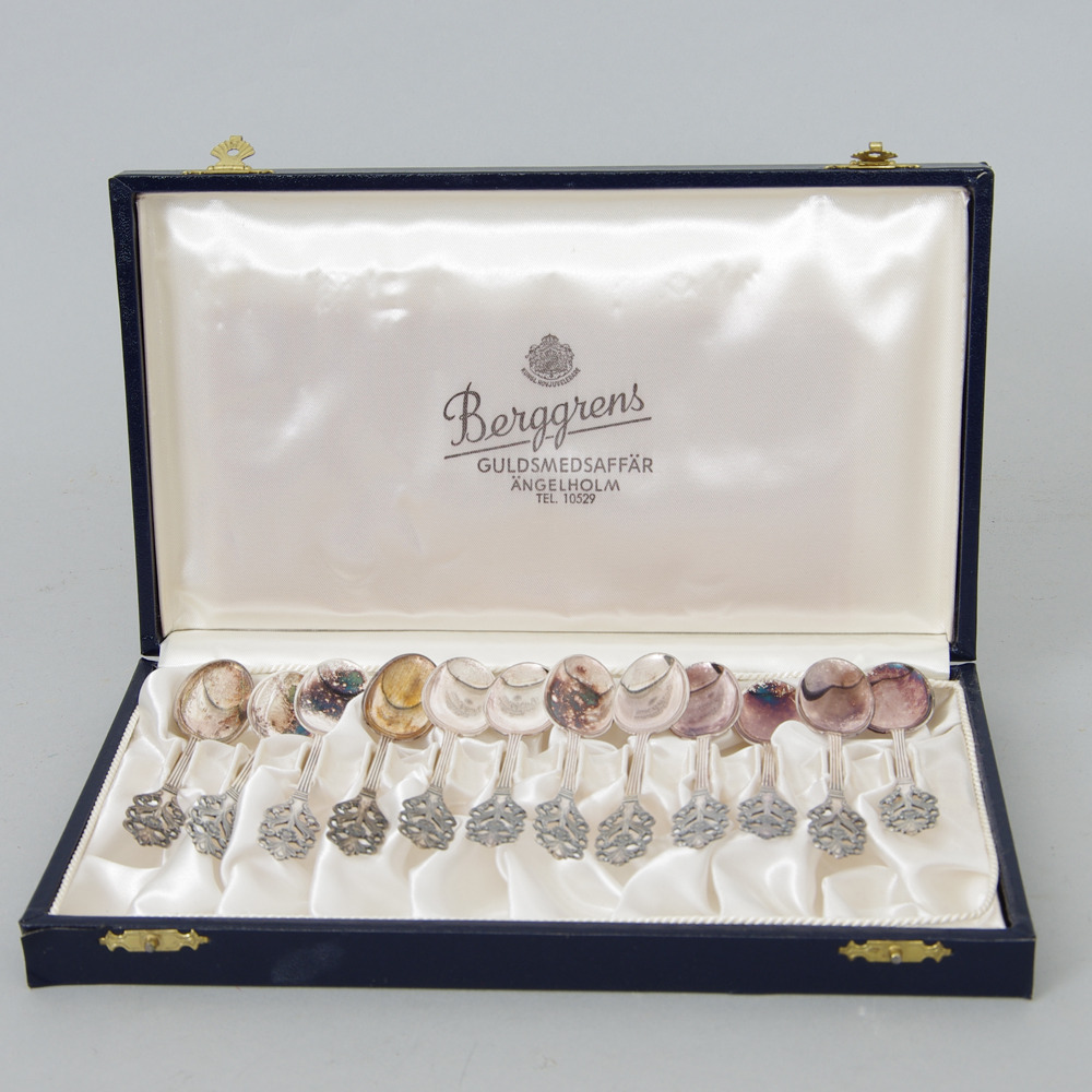 310016. Kaffeskeer, 12 stk., sølv i æske.