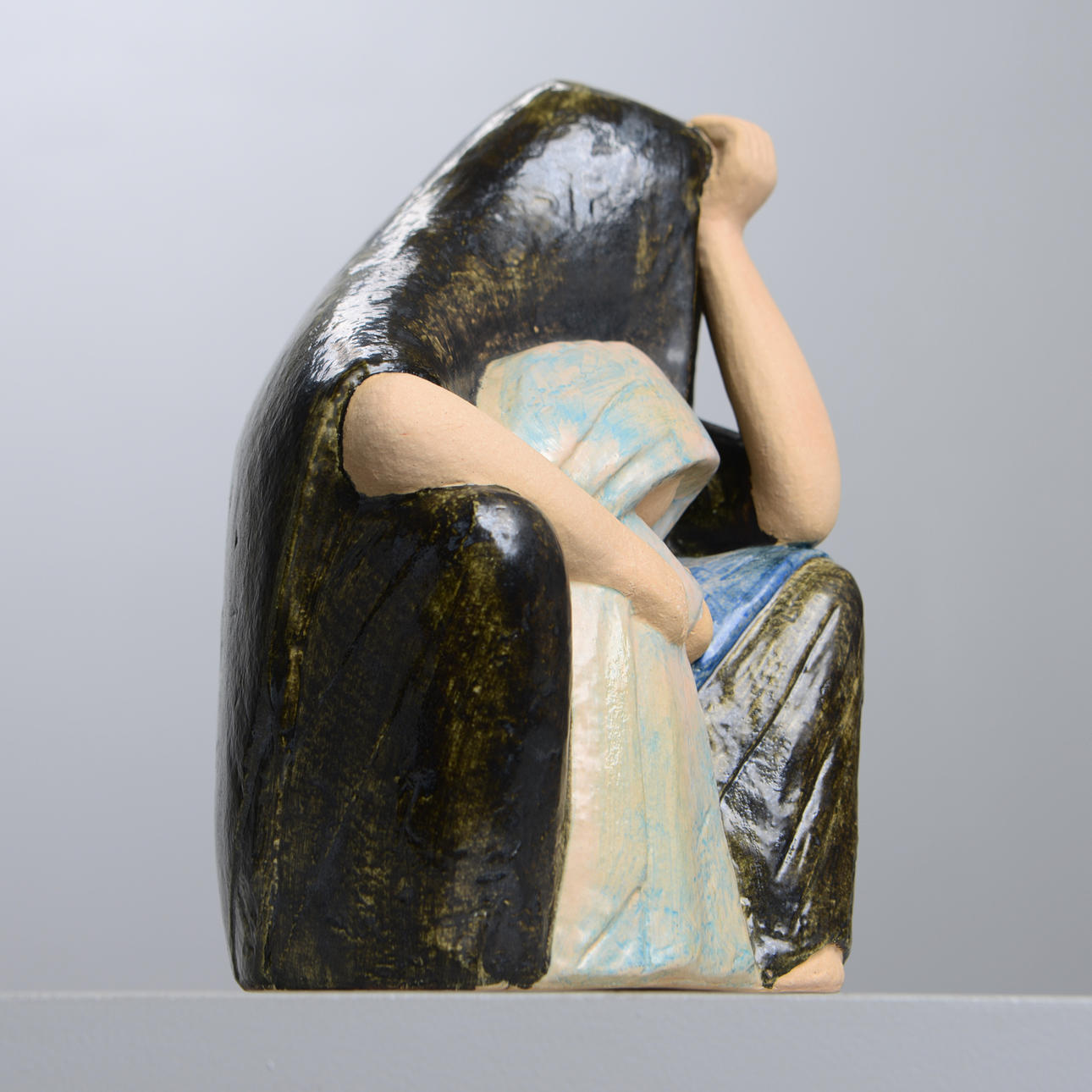 Stentøj, delvist glaseret. Højde 23 cm.