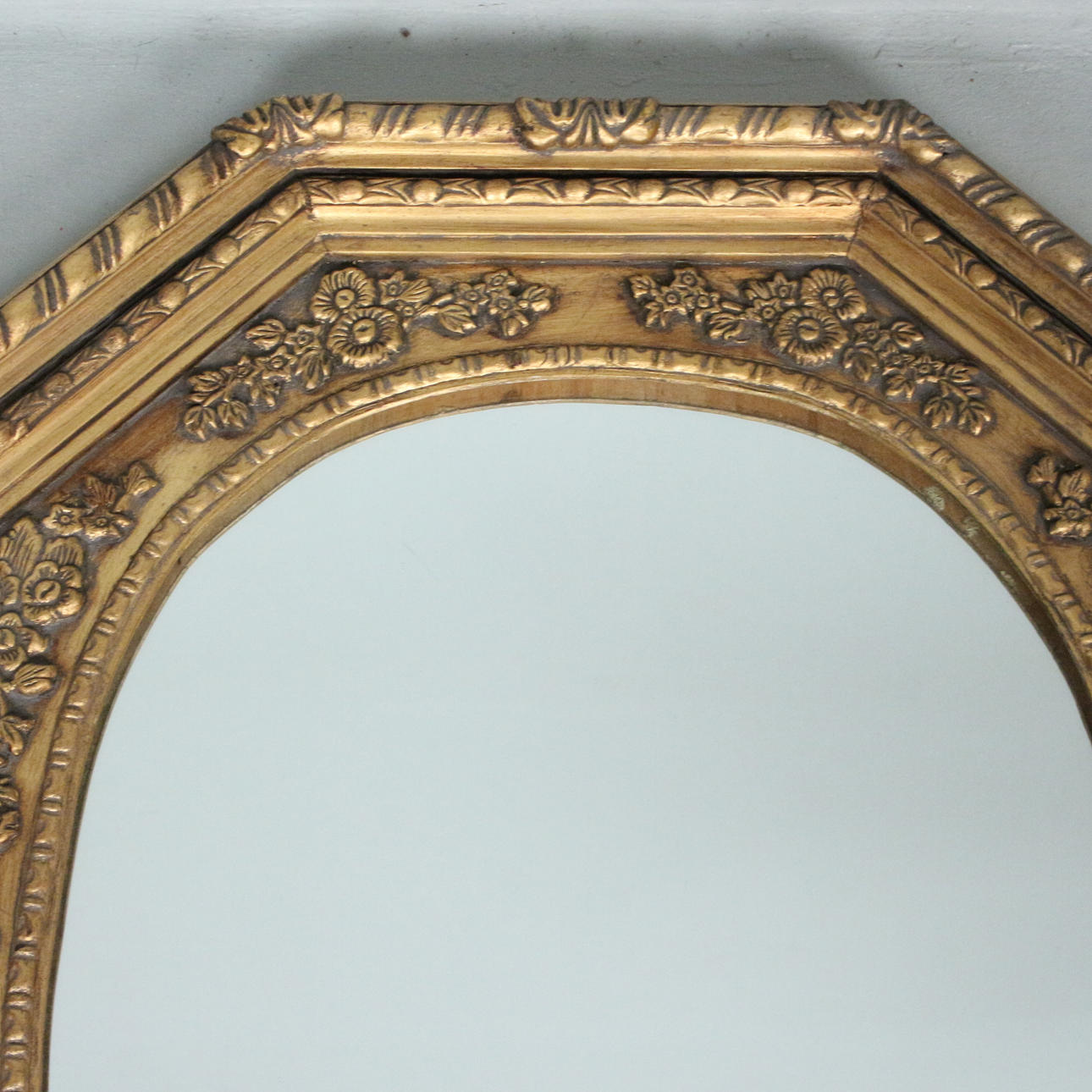 ottekantet spejl/vægspejl, træramme med guldfarvet maling,