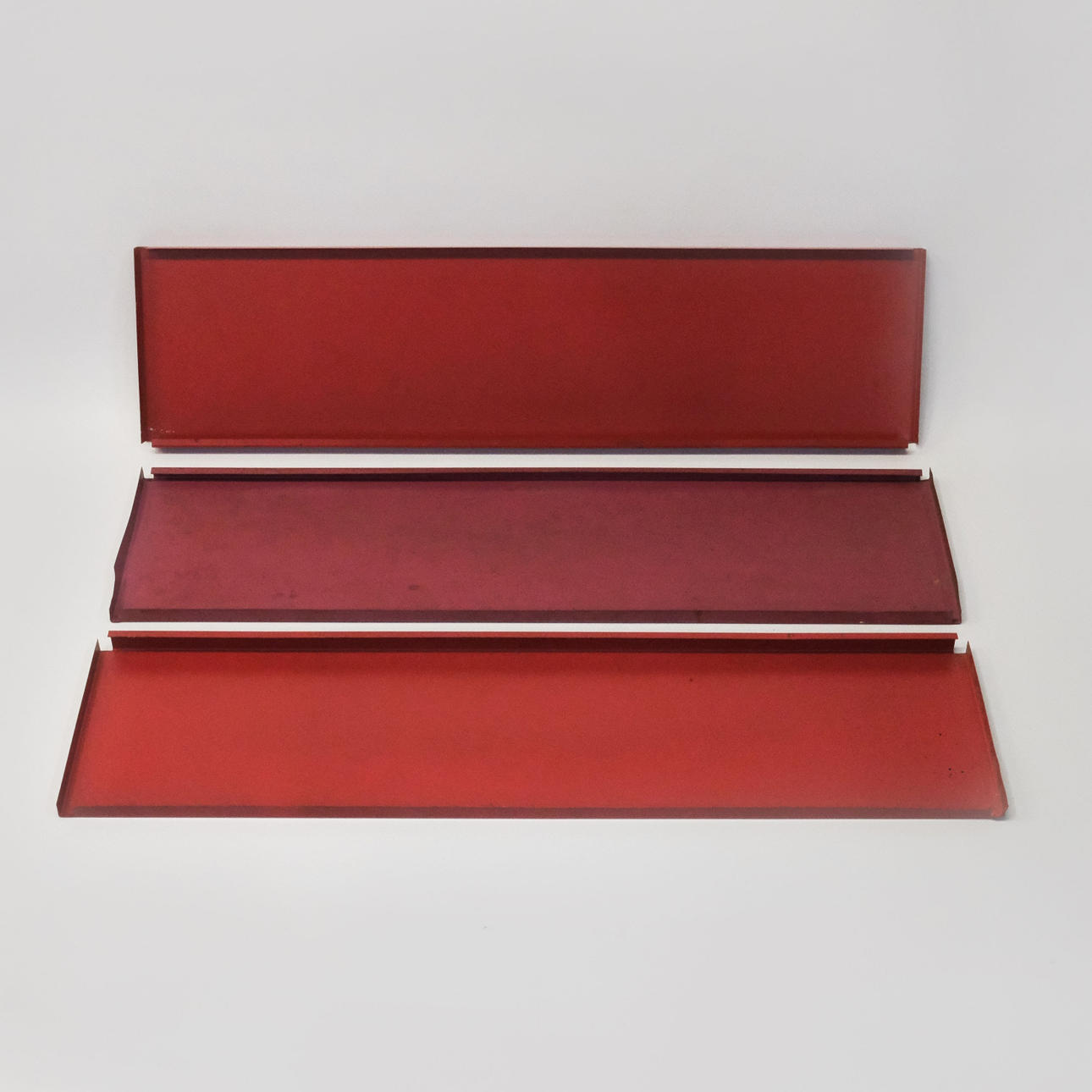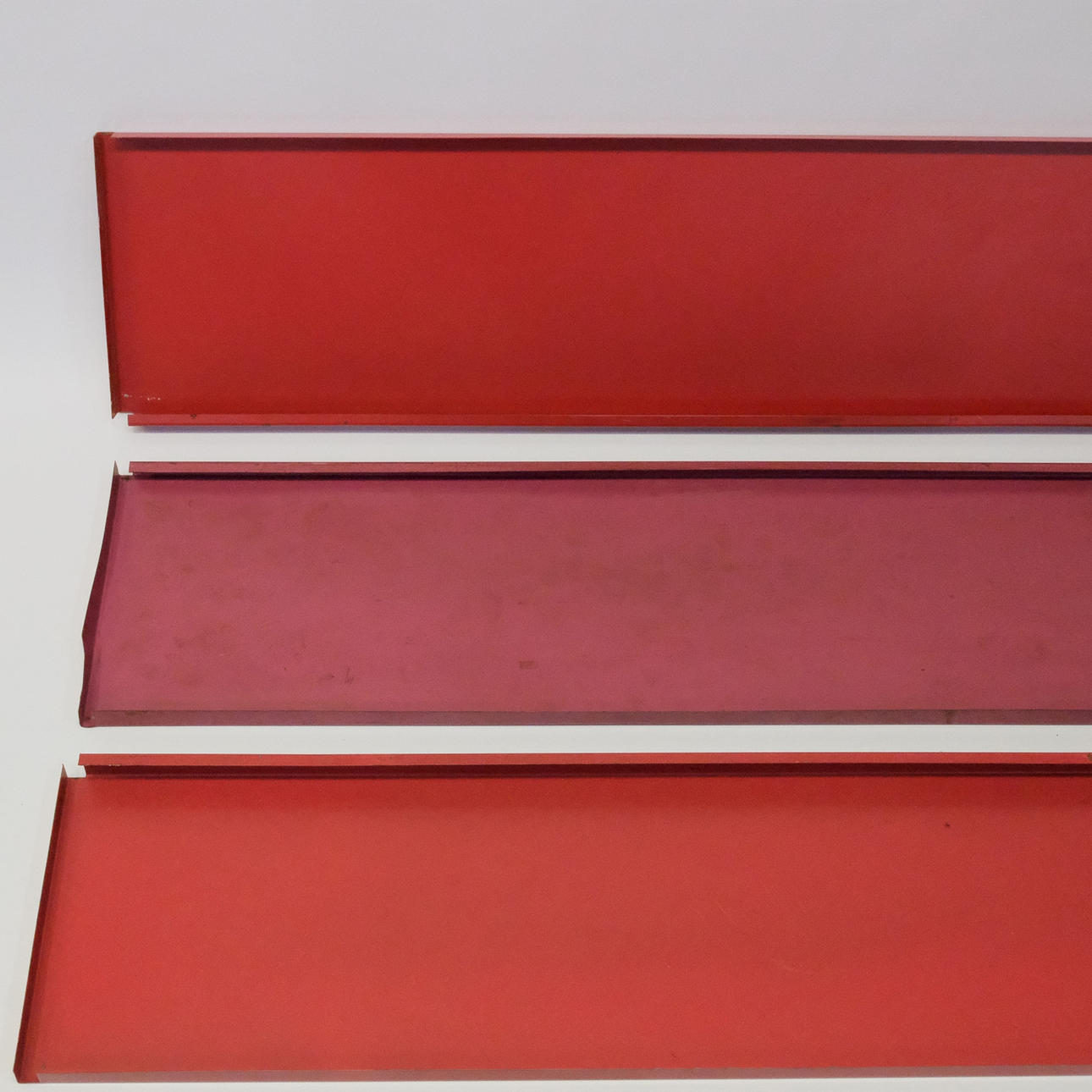 Tre røde hylder. Højde: ca. 77 cm. Bredde: ca 65 cm. Dybde: ca 20 cm.