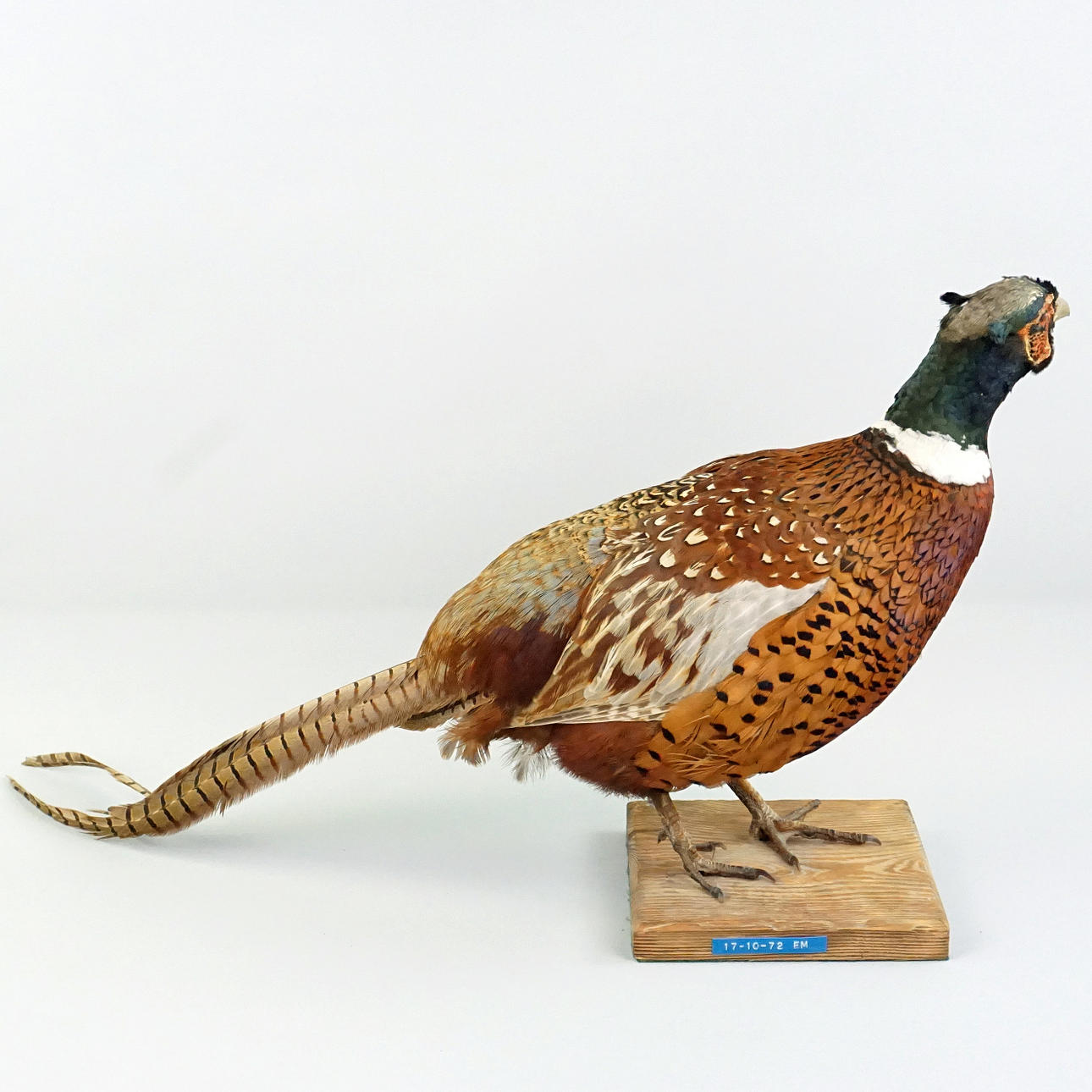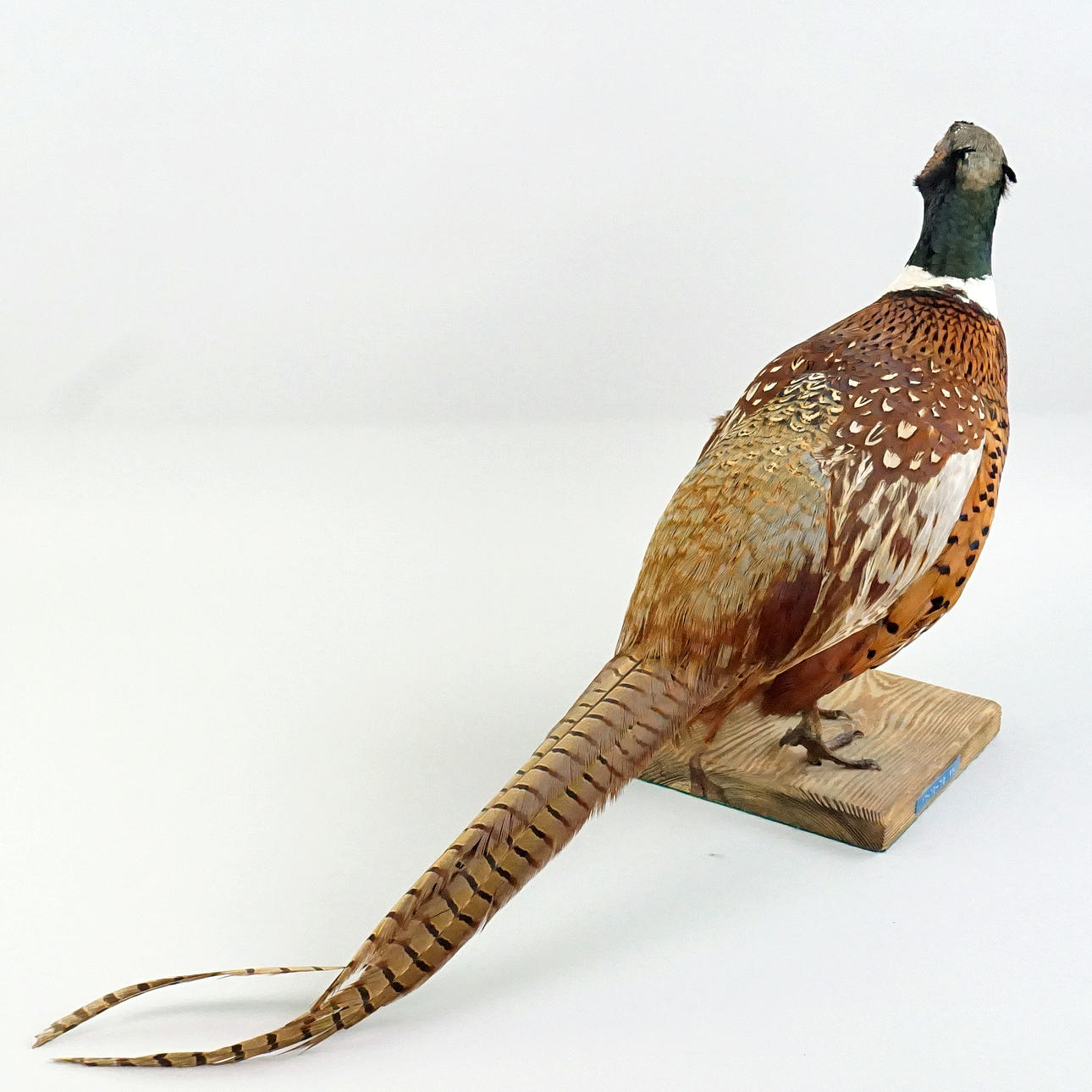 Udstoppet fasanhan, med etiket fyldt på Zoological Assembly Satellite, Uppsala