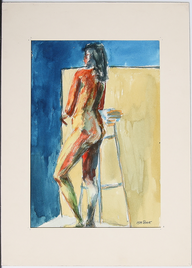 312065. MAX MIKAEL BOOK. "Model", akvarel. Underskrevet.