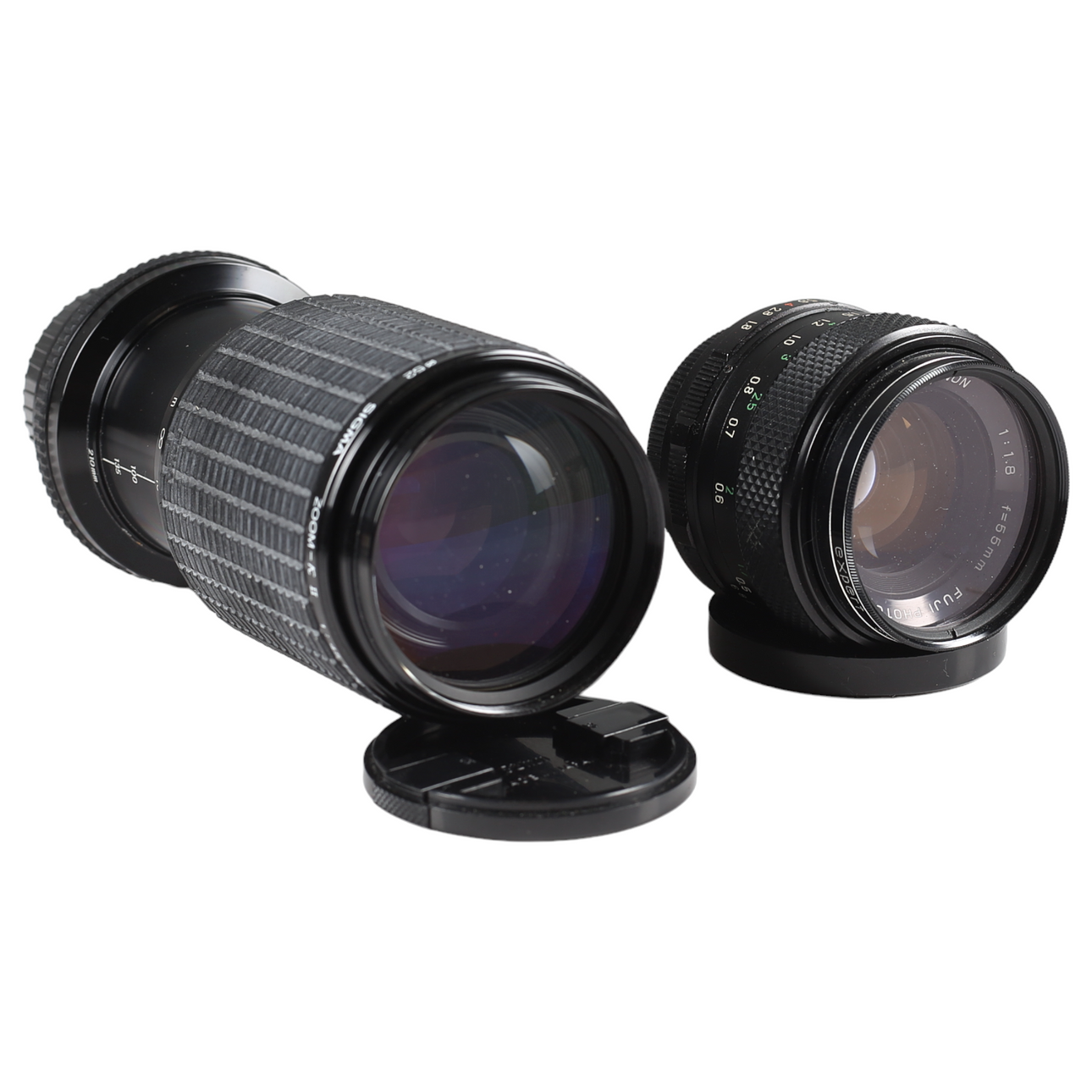 Med kamerakasse indeholdende 2 linser, Fujinon 49mm, Sigma 70-210 mm, Braun Hobby 28BC flash og mere.