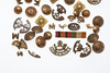 herunder tre Jellabad-badges, Prins Alberts Regiment-knapper, et Somerset-regimentmærke, et emalje-mærke 'For Home and Country'.