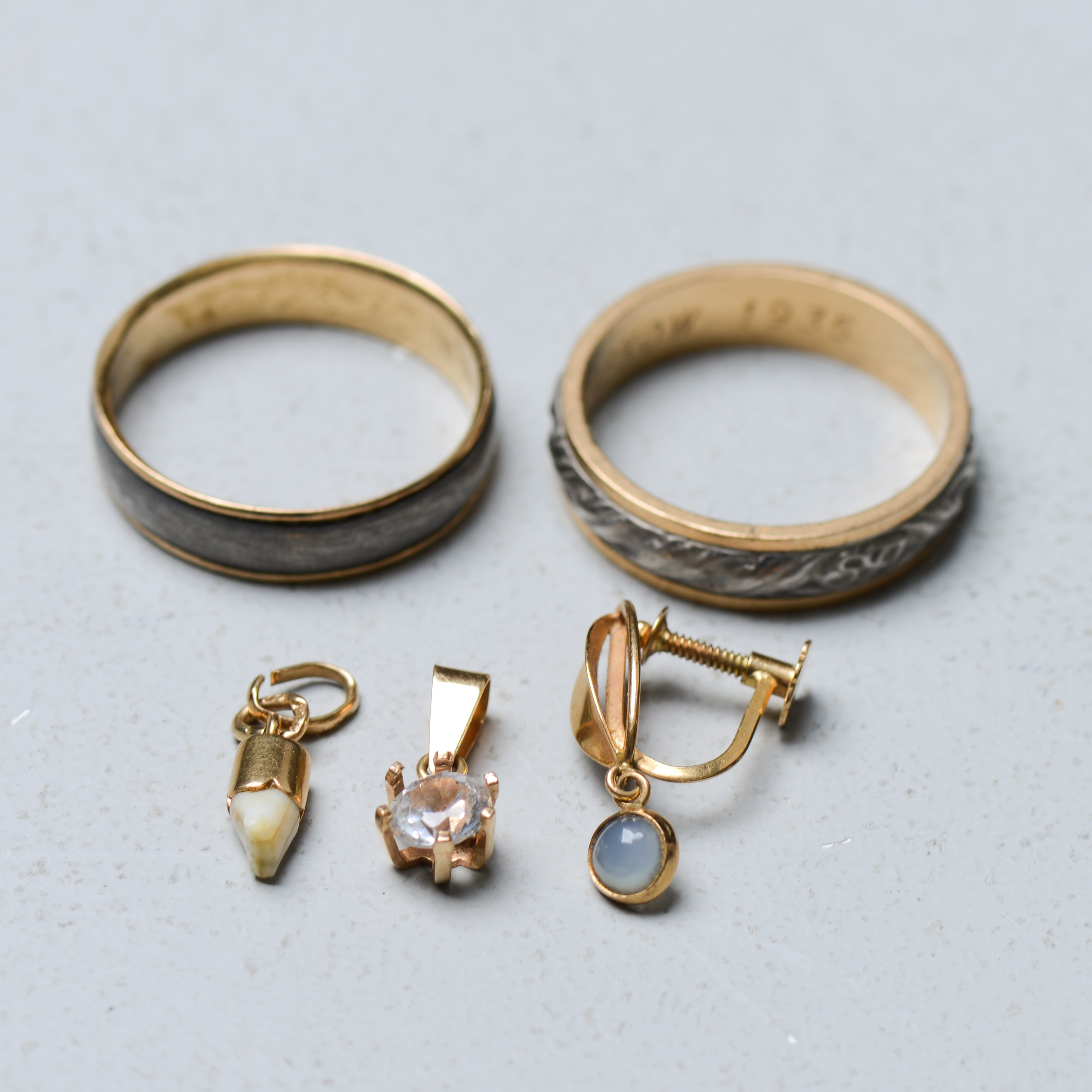 3125014. GULDGENSTANDE, totalvægt 14 gram.