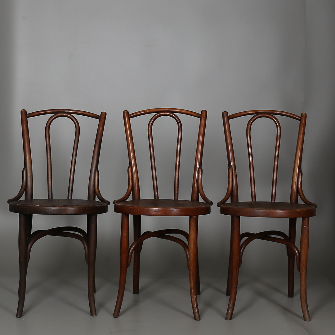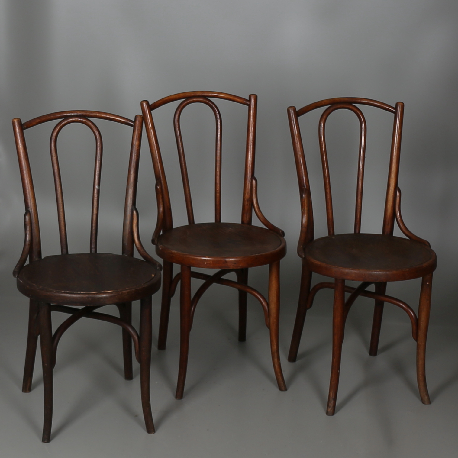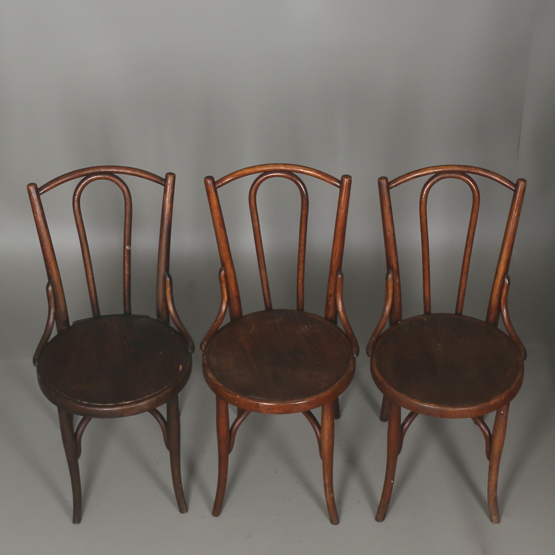 312571. CAFESTOLAR, 3 stk, en mærket Thonet.
