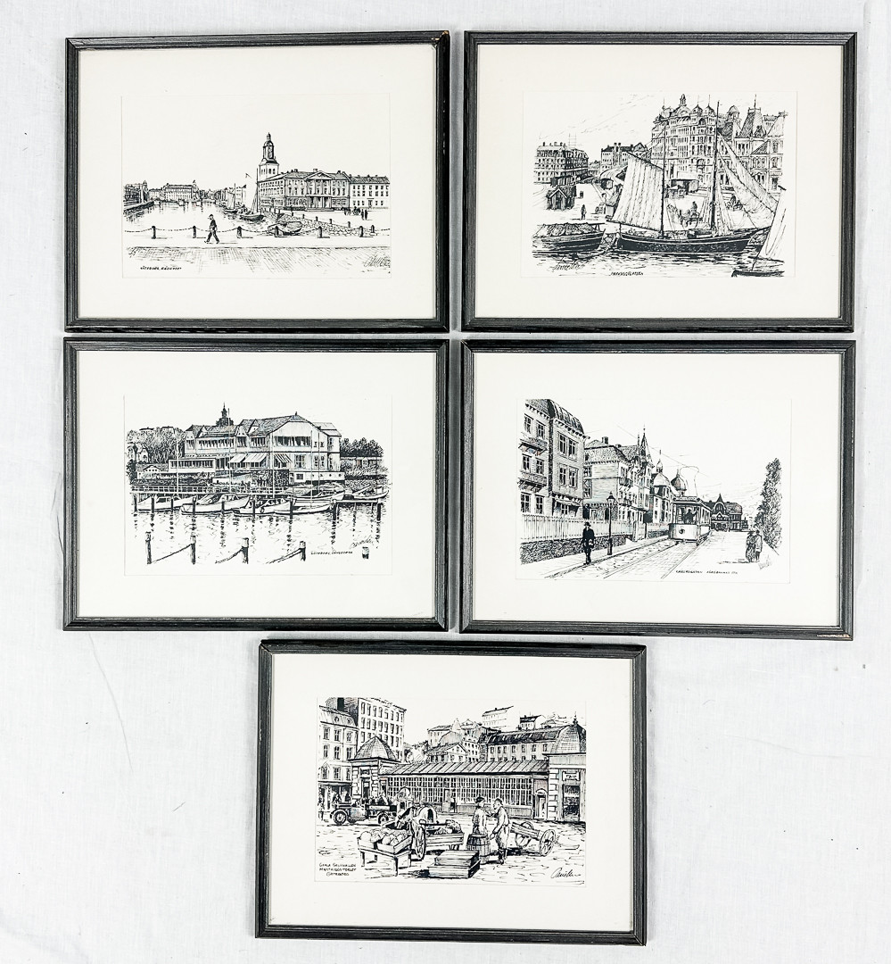 3125816. ALF DANIELSEN. Tryk, 5 stk., „Göteborg“, signeret.