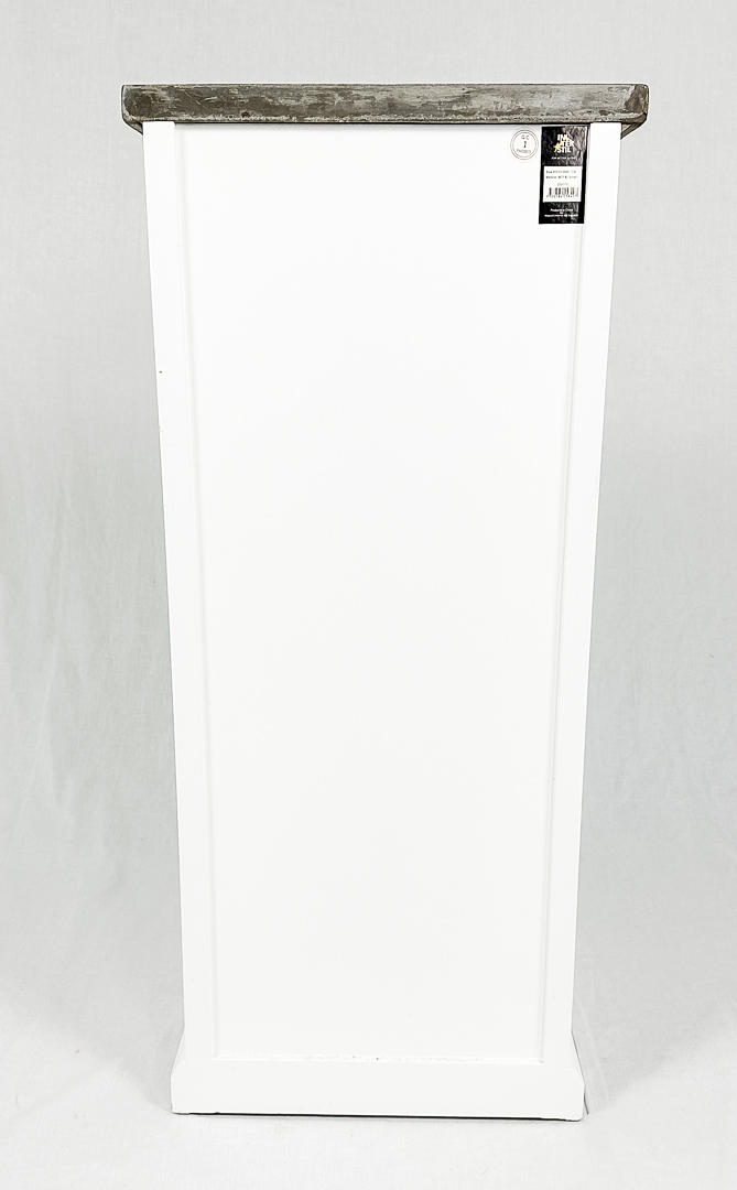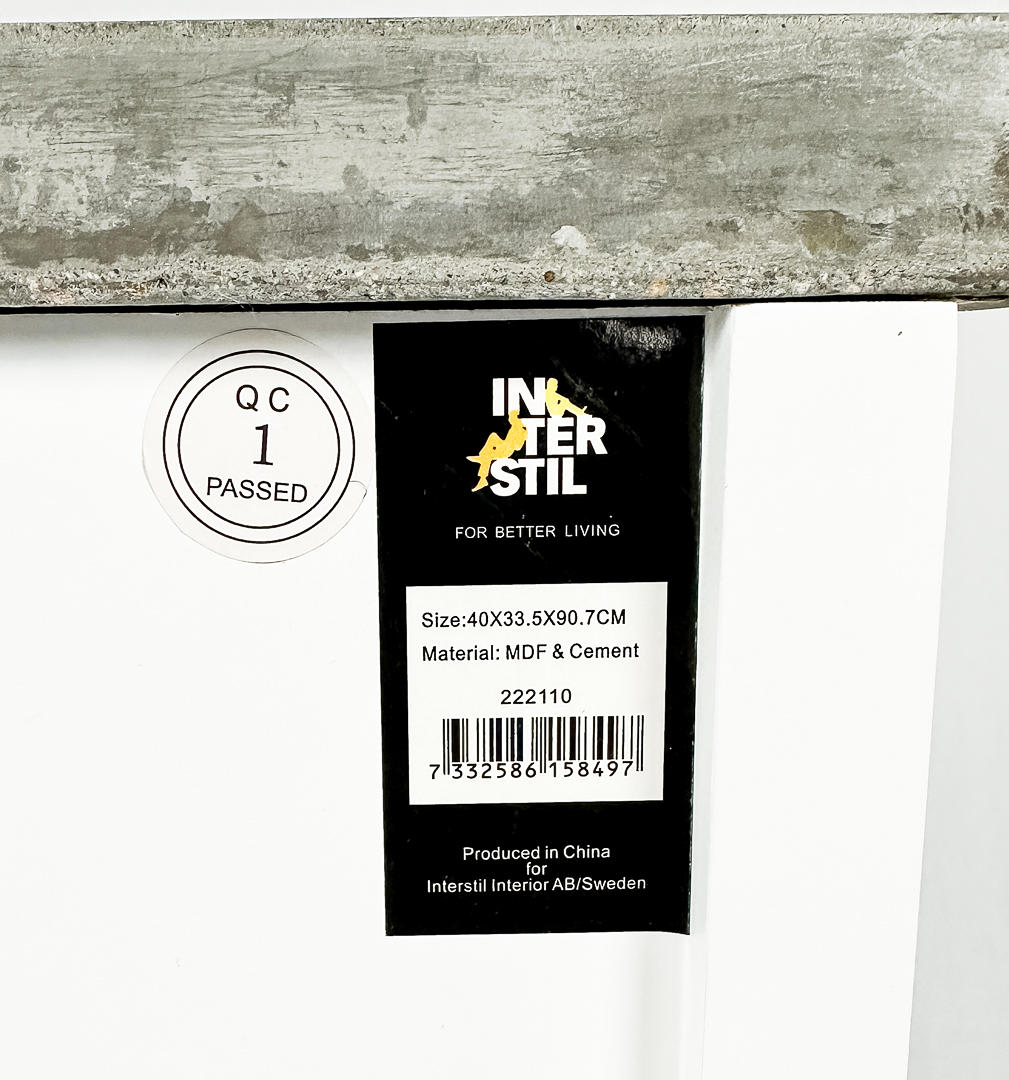 Hvid kommode med cementplade.