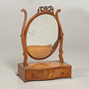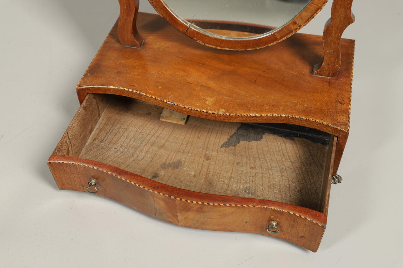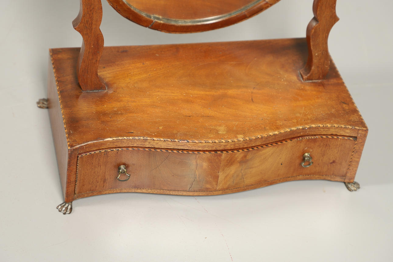 Det ovale spejl med bånd udskåret overmount, på serpentinformet base med enkelt friseskuffe.