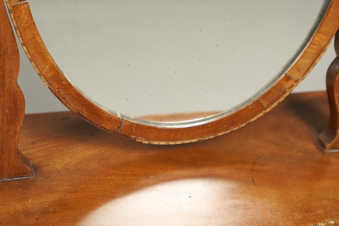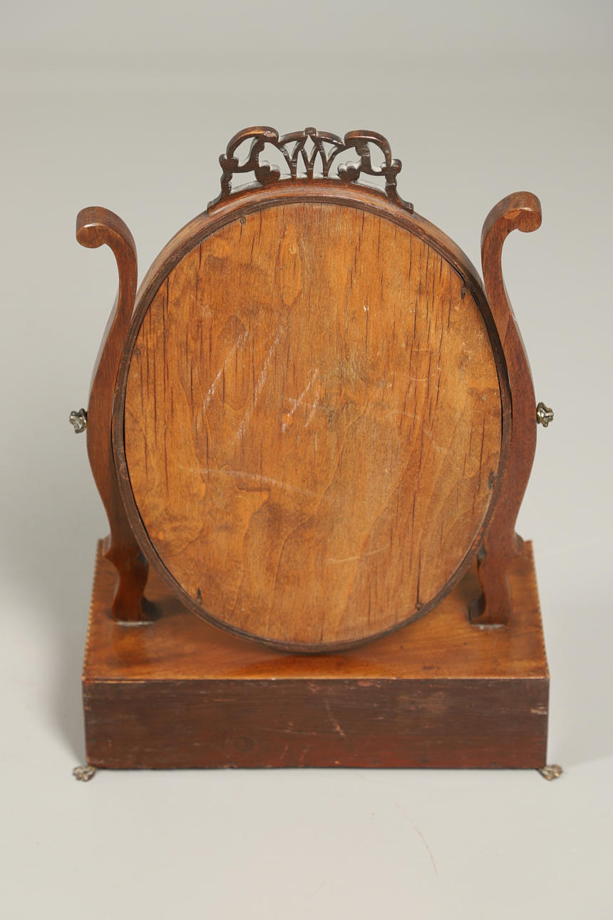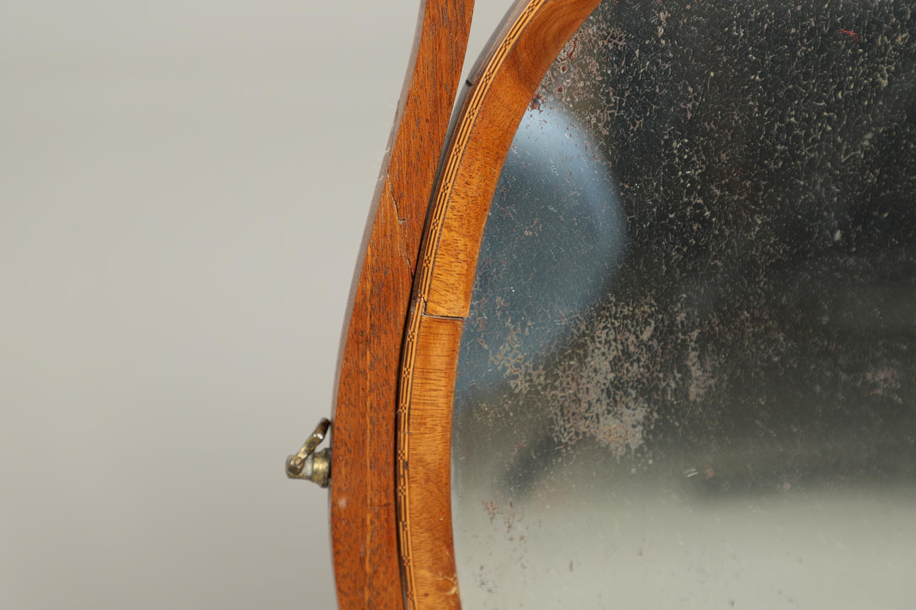 ET MAHOGNI INDRAMMET TOILETSPEJL.