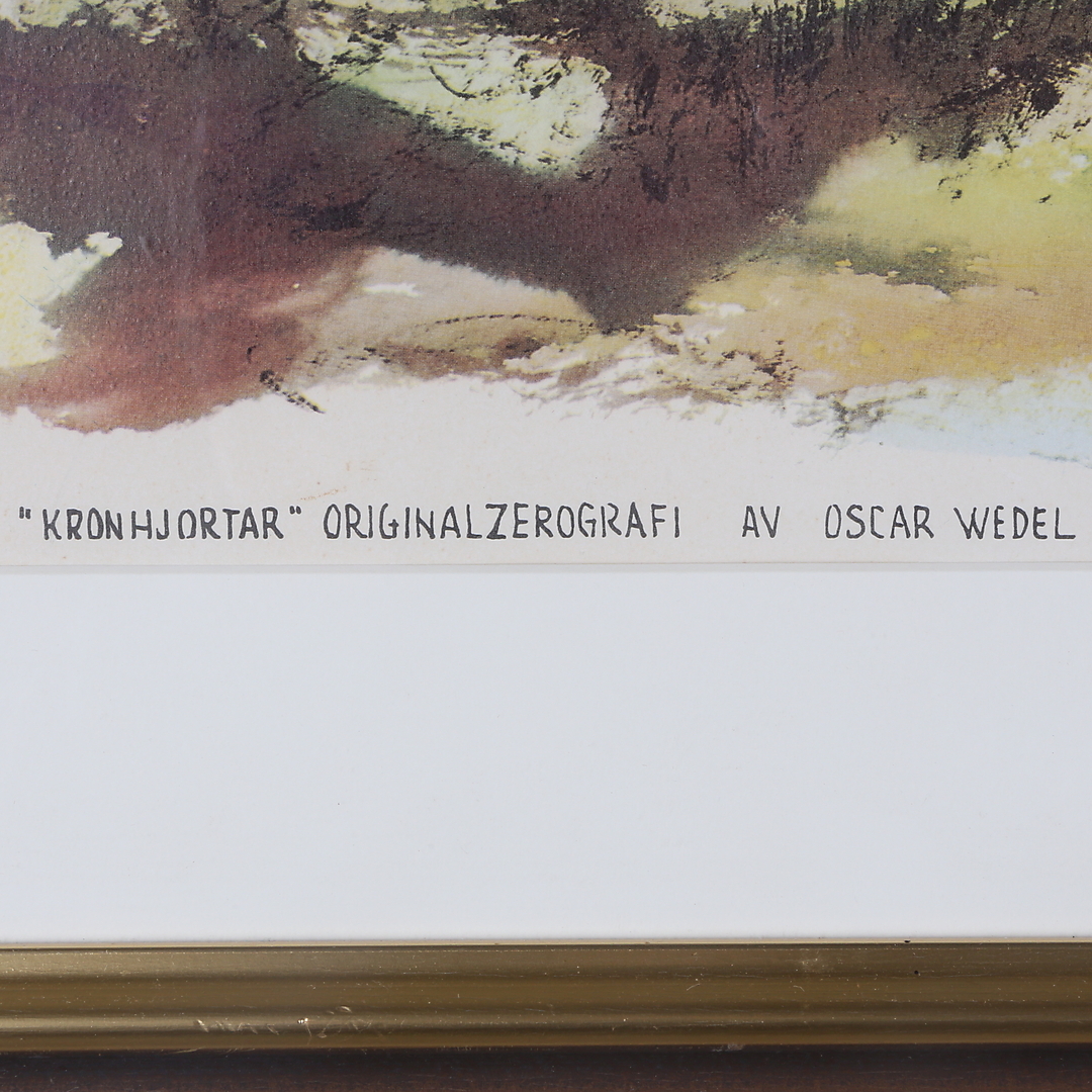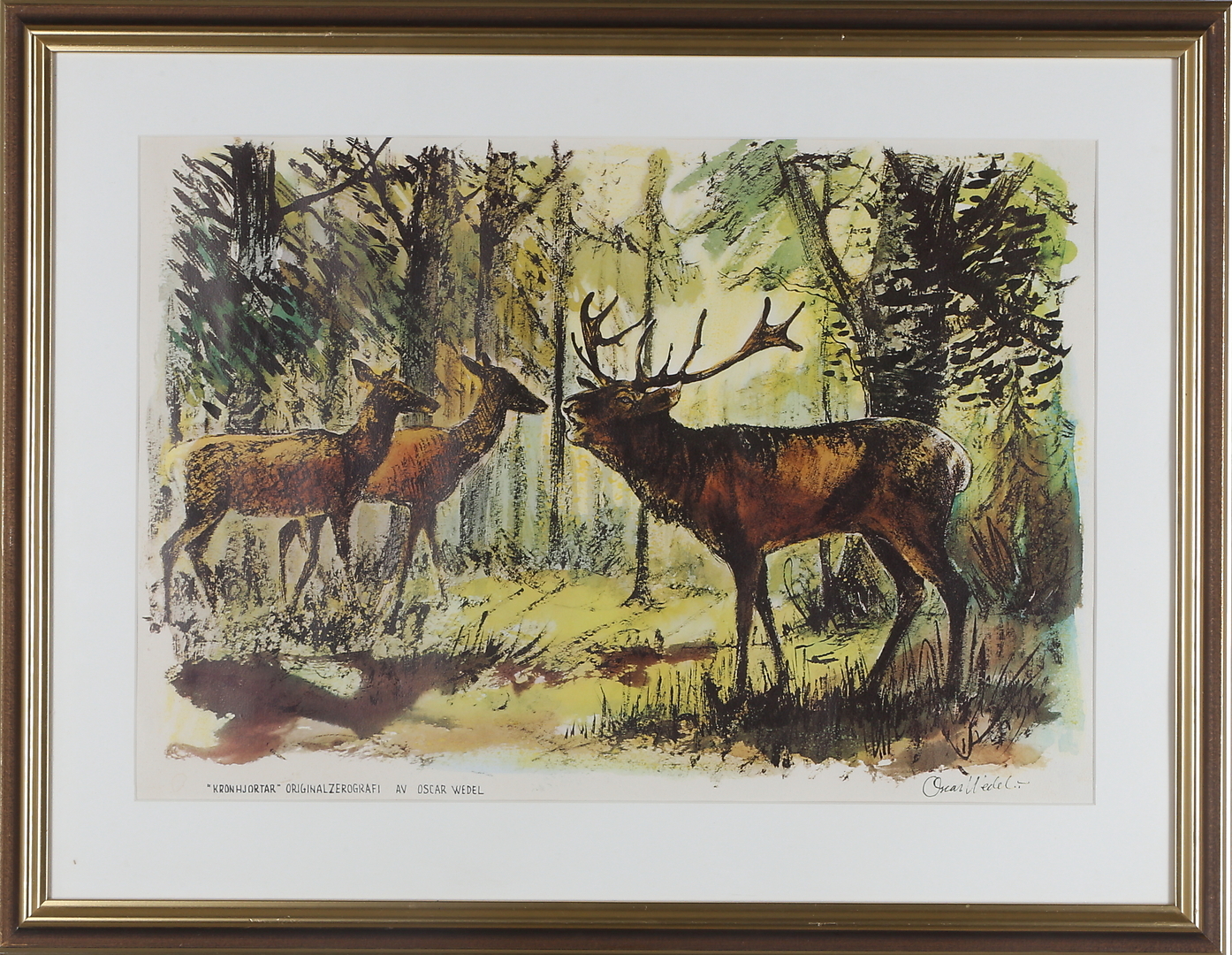 312924. OSCAR WEDEL. "Kronhjortar", original xerografi, signeret.
