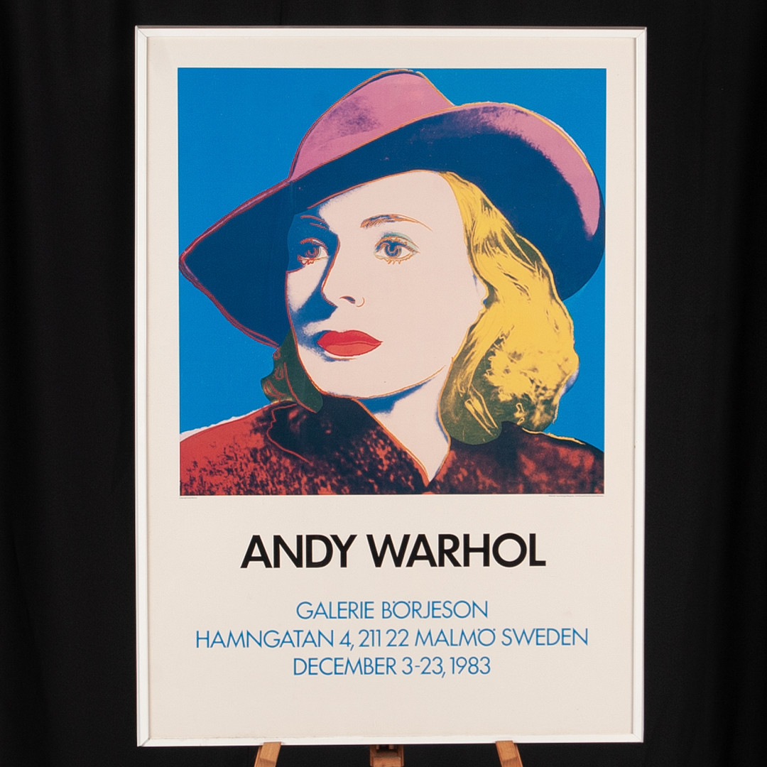 3129301. ANDY WARHOL. EFTER. UDSTILLINGSPLAKAT, „Med hat“ galleri Börjesson 1983.