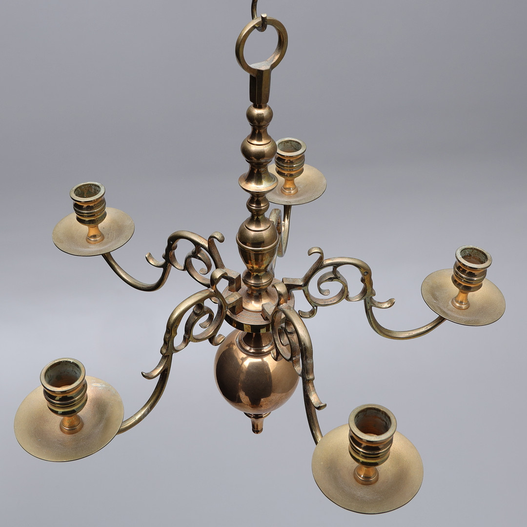 3134013. LYSEKRONE, 5-arm, Malm, 20. årh.