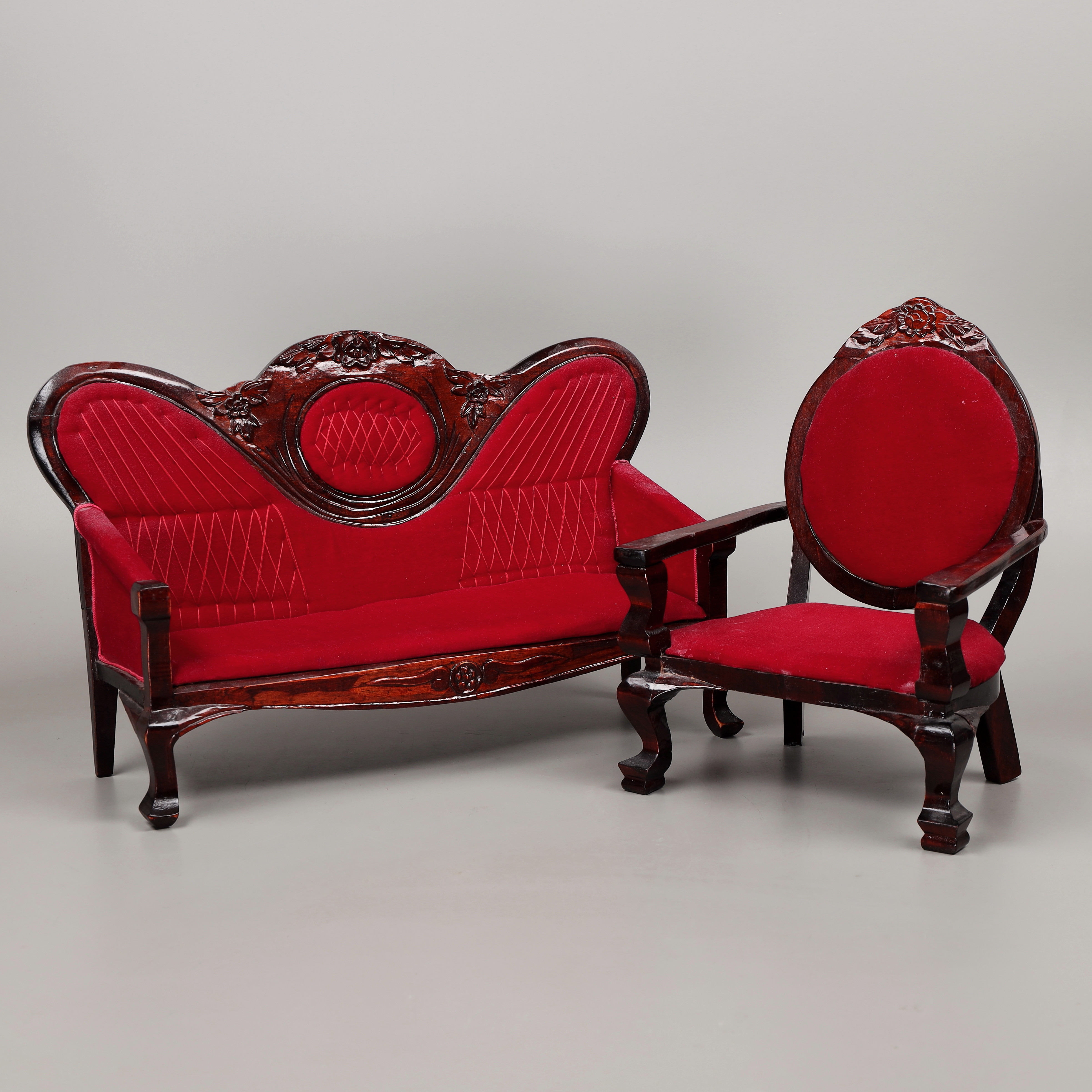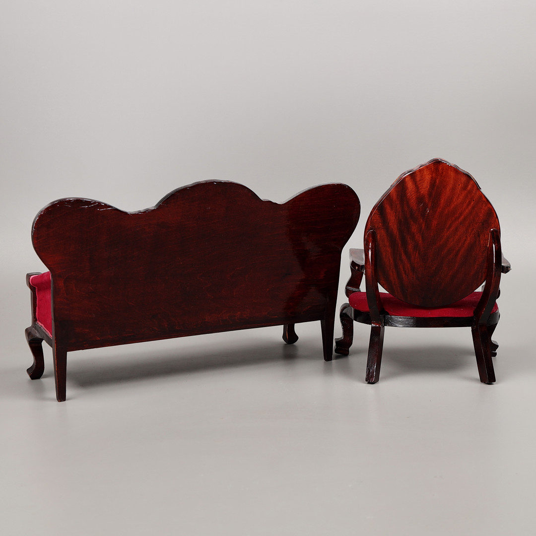 3134258. DUKKEMØBLER, sofa og lænestol, 20. århundrede.