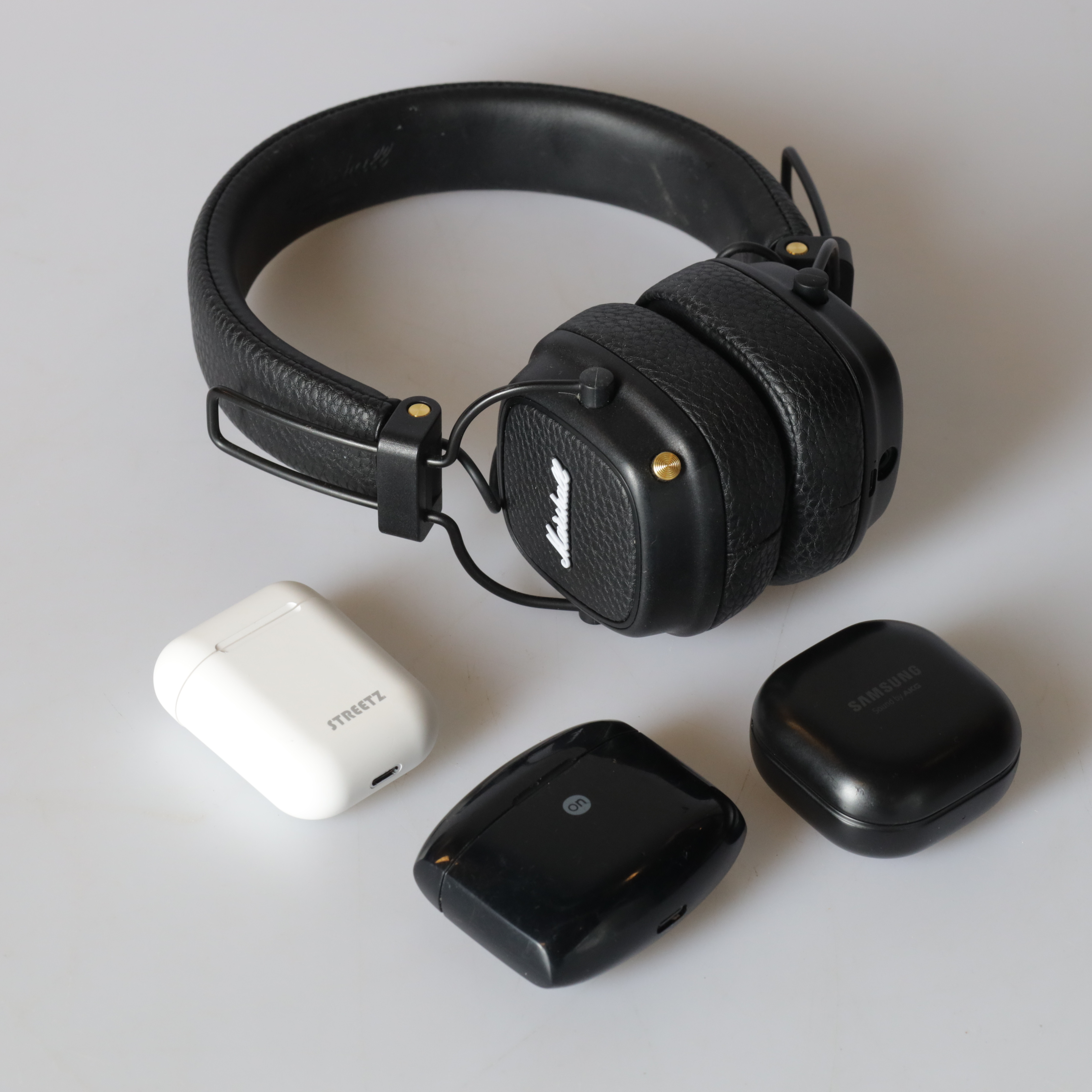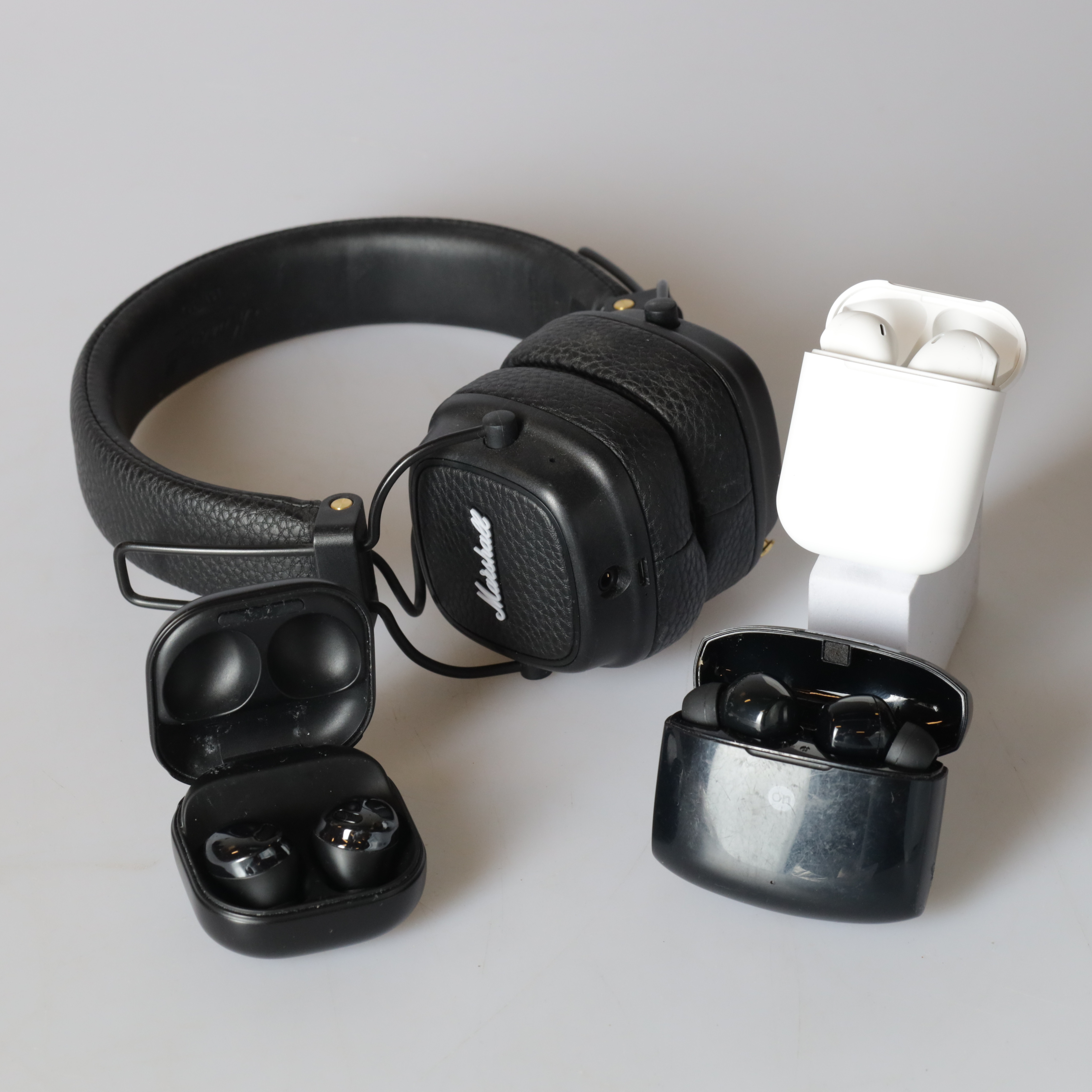 3136729. Hovedtelefoner, 4 stk, inklusive Marshall & Samsung.
