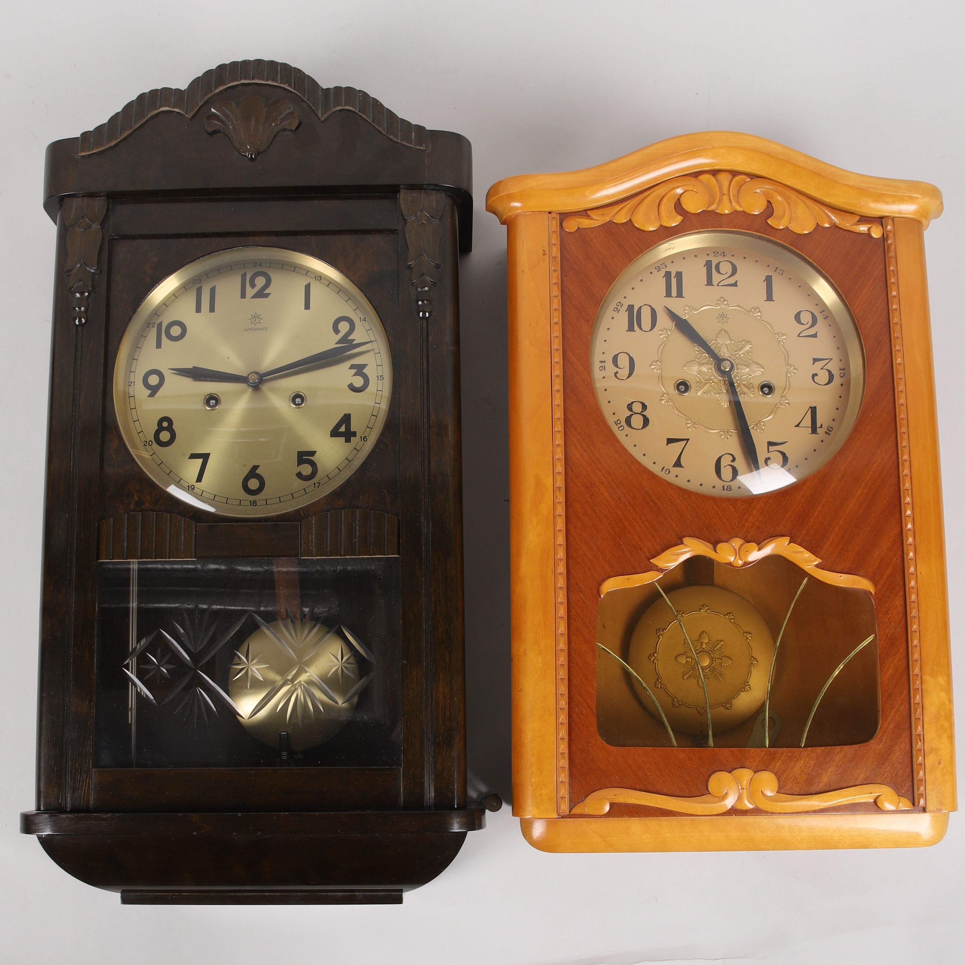 3137089. Vægur, 2 stykker, træ & glas, Junghans, Tyskland.
