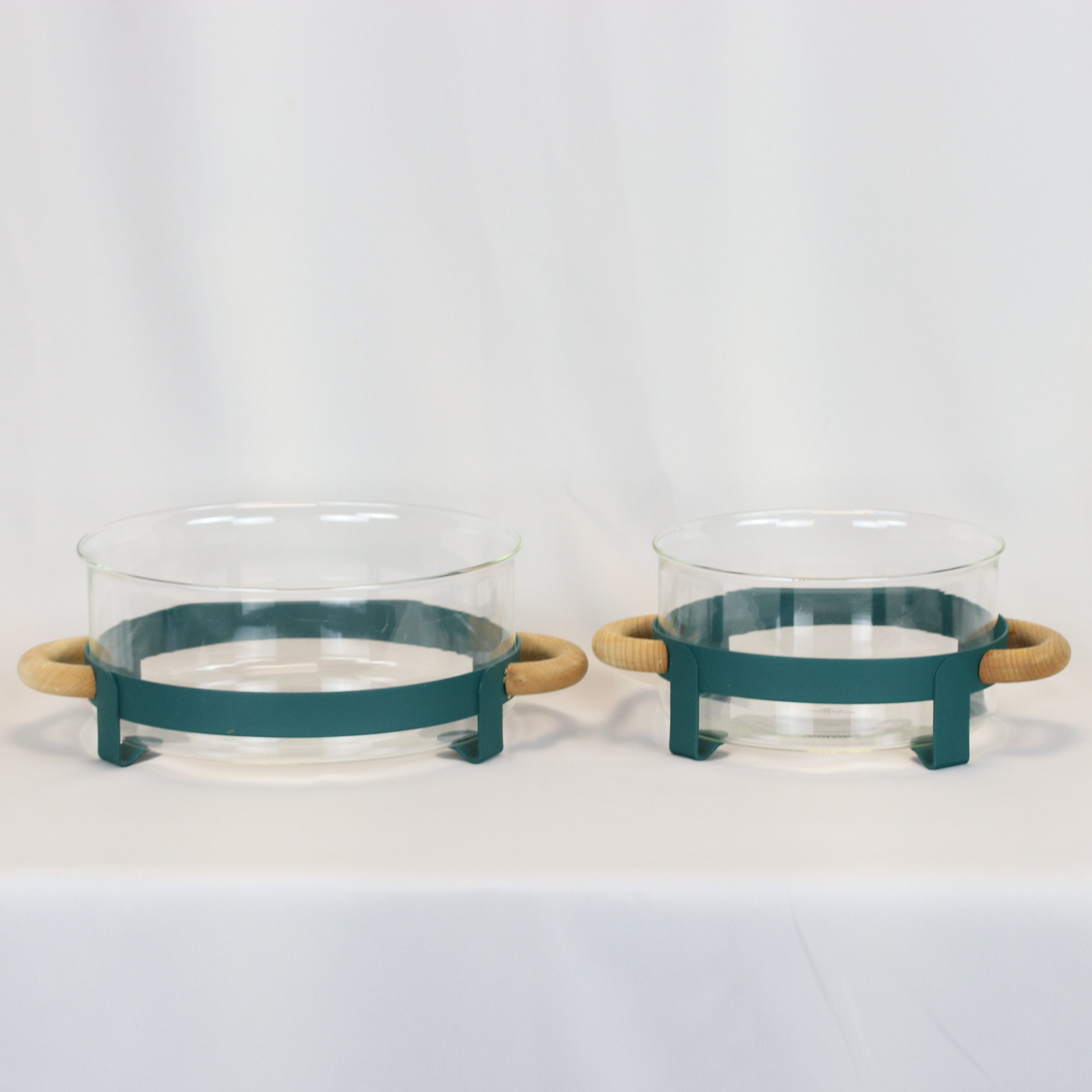3137890. GRATINFORME, 2 stk, glas, metal, træ, Boda Nova.