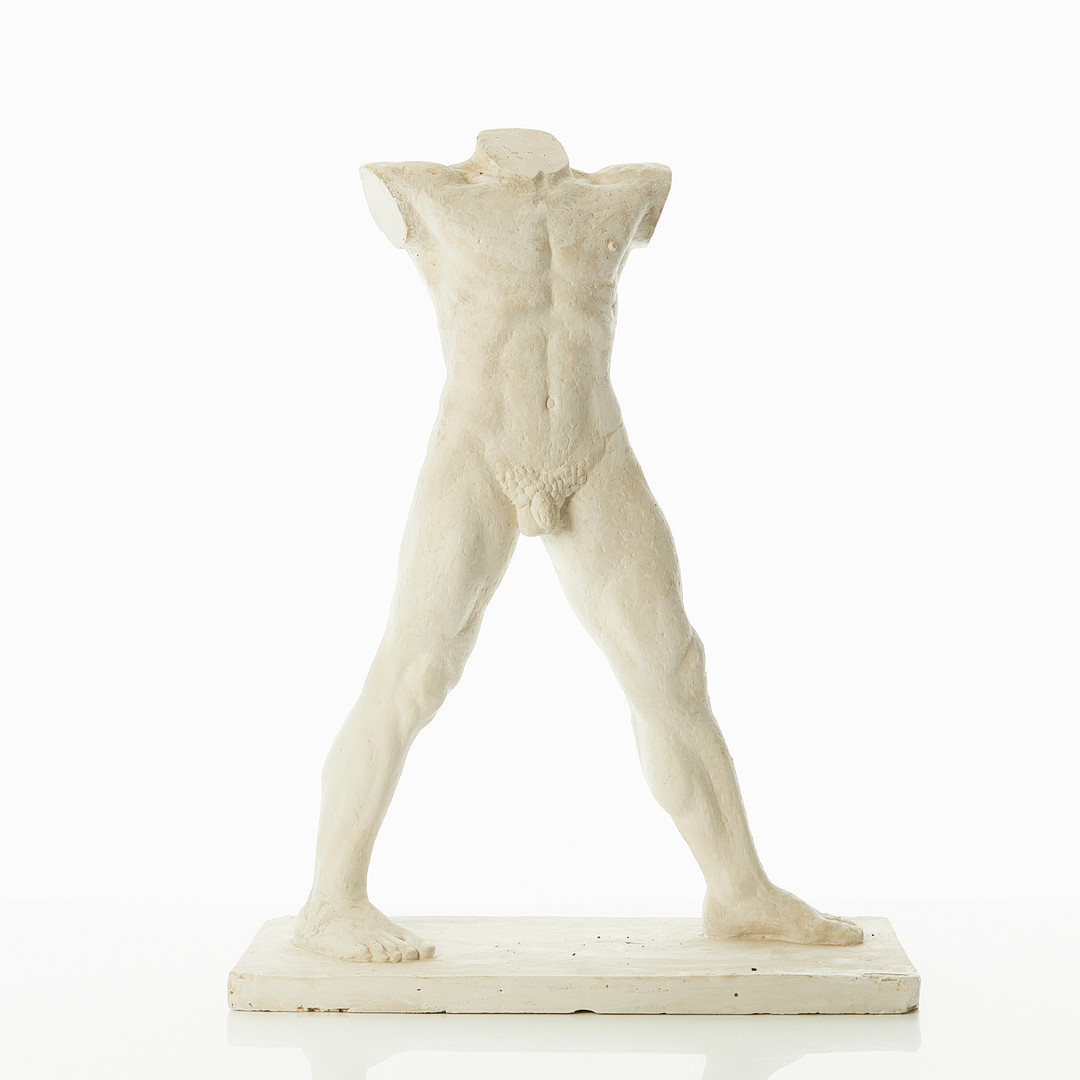 3138260. SKULPTUR, mandlig krop, gips, efter ældre model.