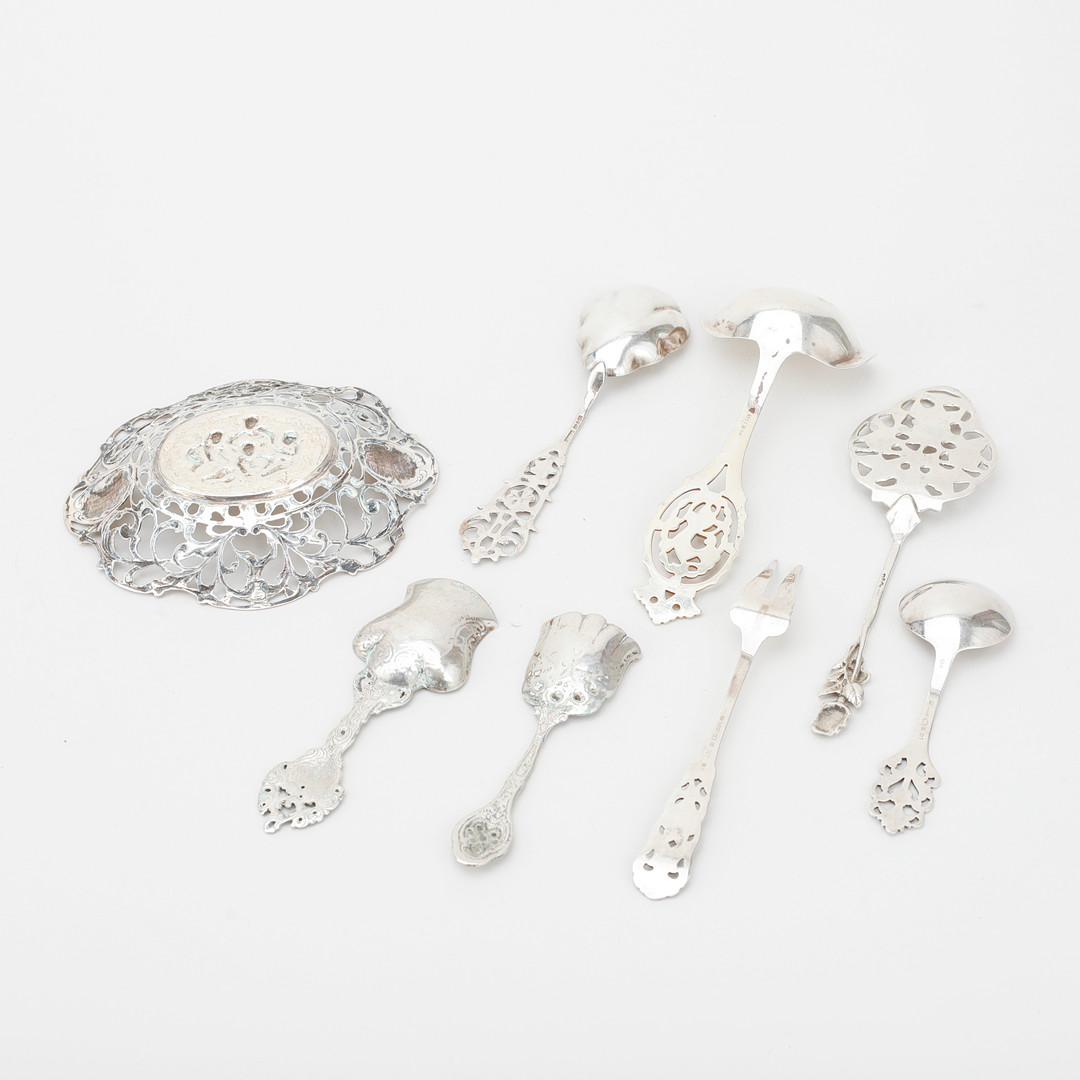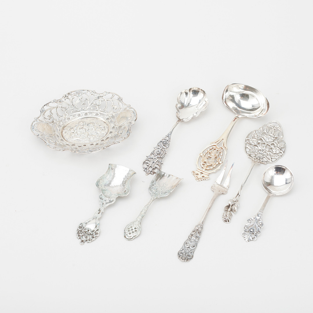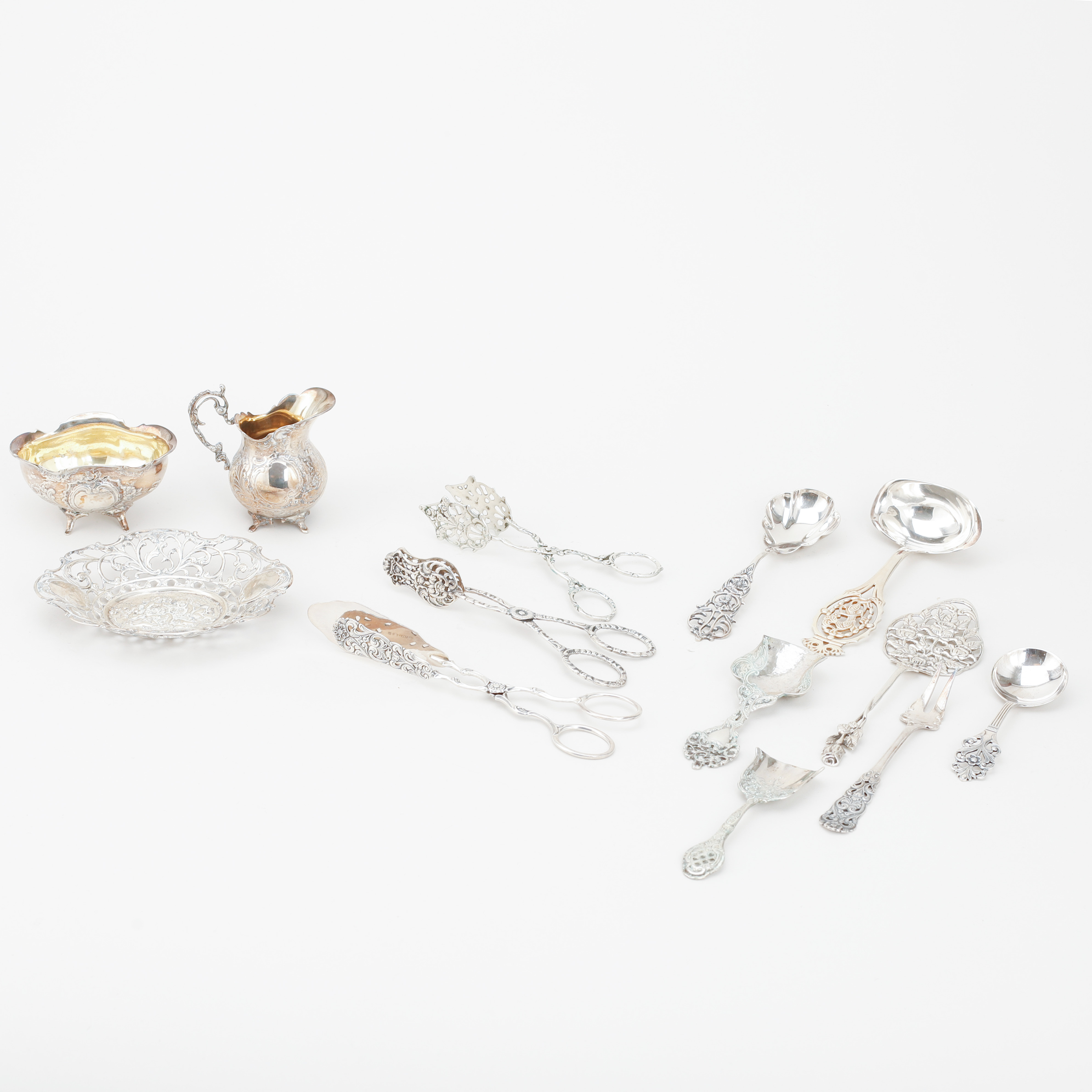 3139185. DIVERSE SØLVGENSTANDE, Rococo stil, vægt ca. 480 gram.