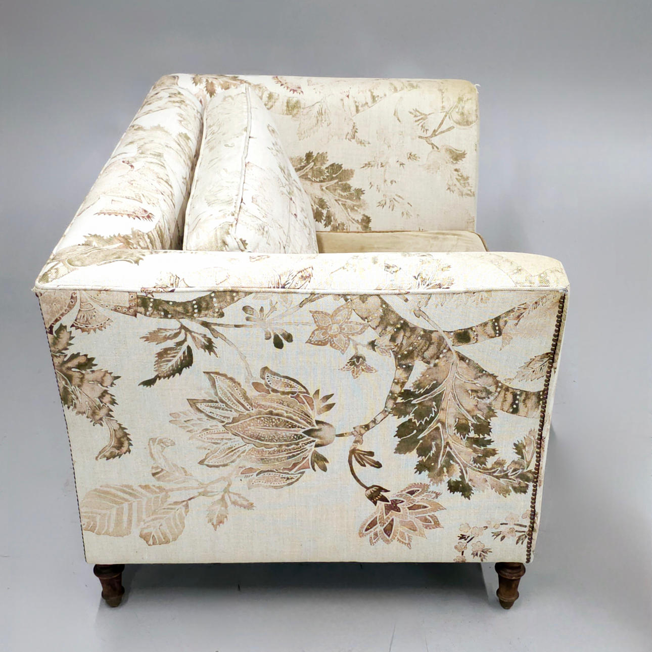 Med slid på polstring og tegn på brug.