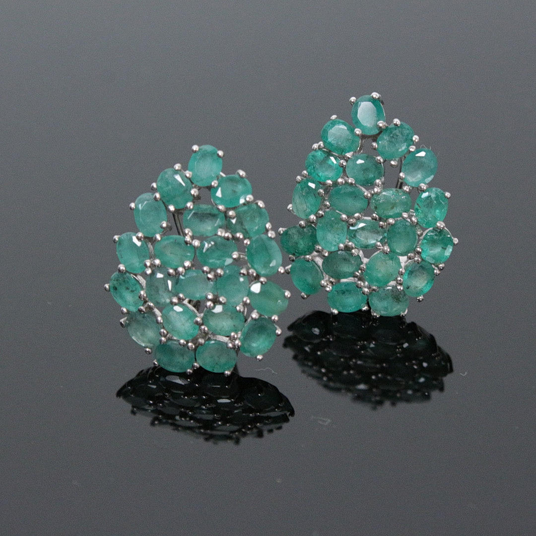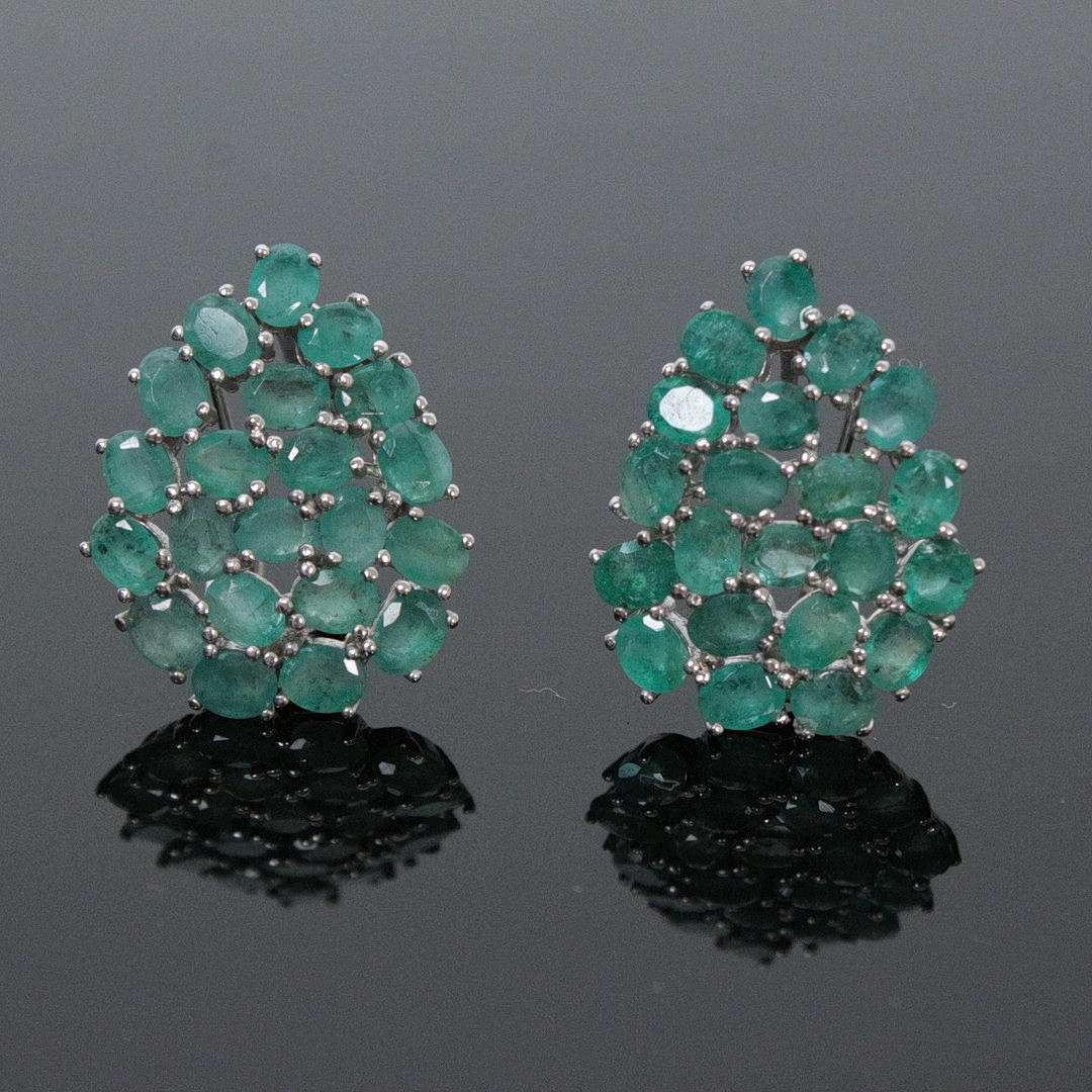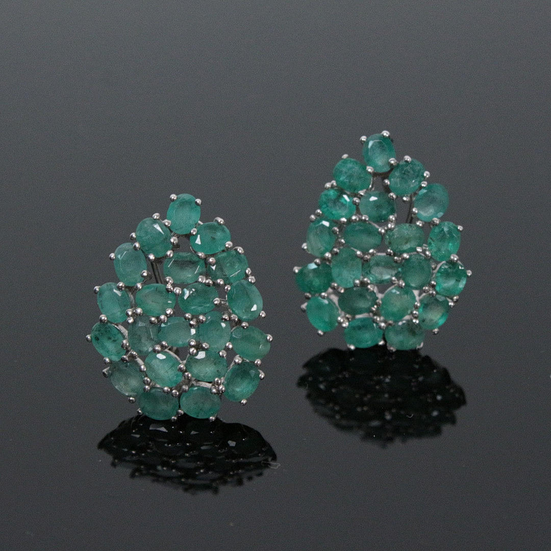 Ørestikker med smaragd 925 sølv, rhodineret 42 smaragder, ca. 4 x 3 mm, oval facetteret, kraftig grøn, gennemsigtig samlet størrelse: ca. 25 x 19 mm totalvægt: ca. 7,31 g