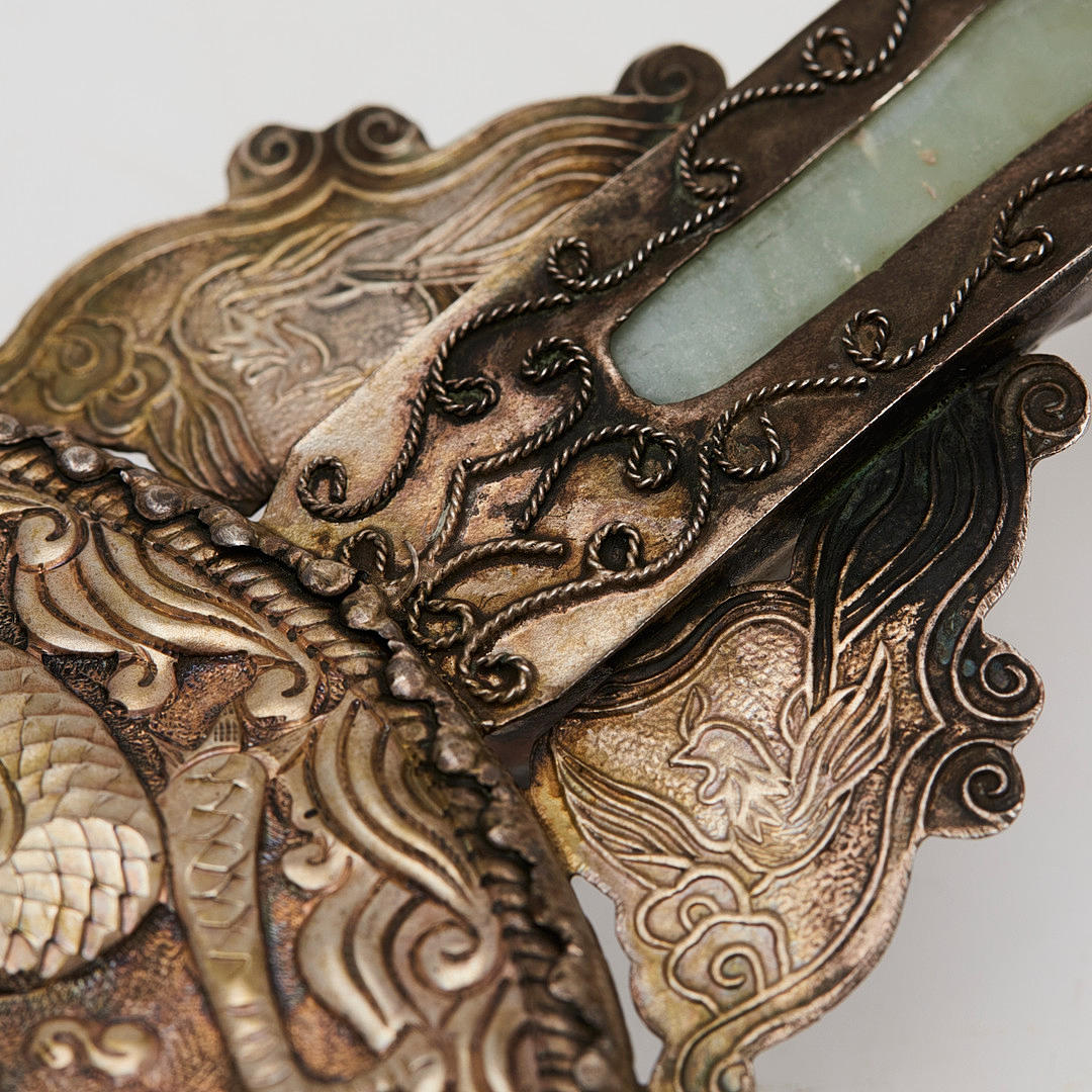 3142500. spejl, sølv, jade, 20. århundrede, Kina.