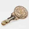 Spejl, sølv, jade, 20. århundrede, Kina. Rundt sølvspejl med reliefskildring af en drage og ornamentik, med håndtag med indeslutninger af jade i form af en drage, legeringstestet, L.22cm, B10.5cm.