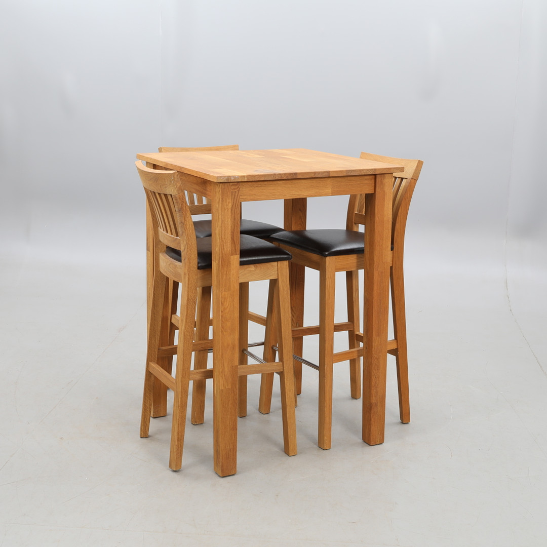 3142771. BARBORD, med tre stole, eg.