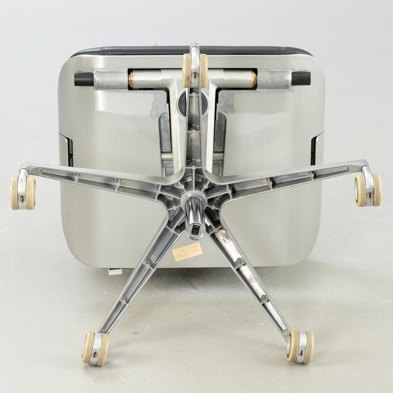 og vægtregulering. Børstet aluminiumsbase, sædebetræk dækket med læder.