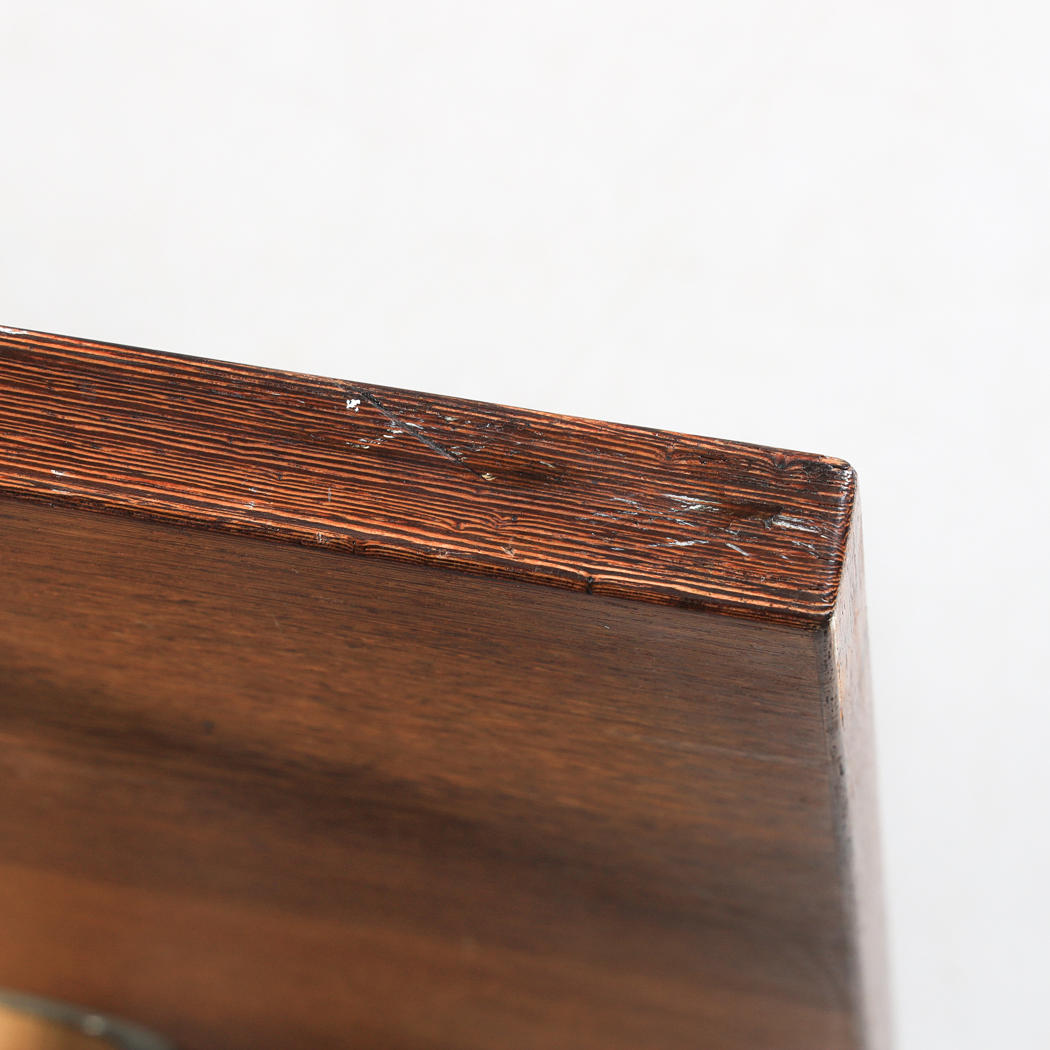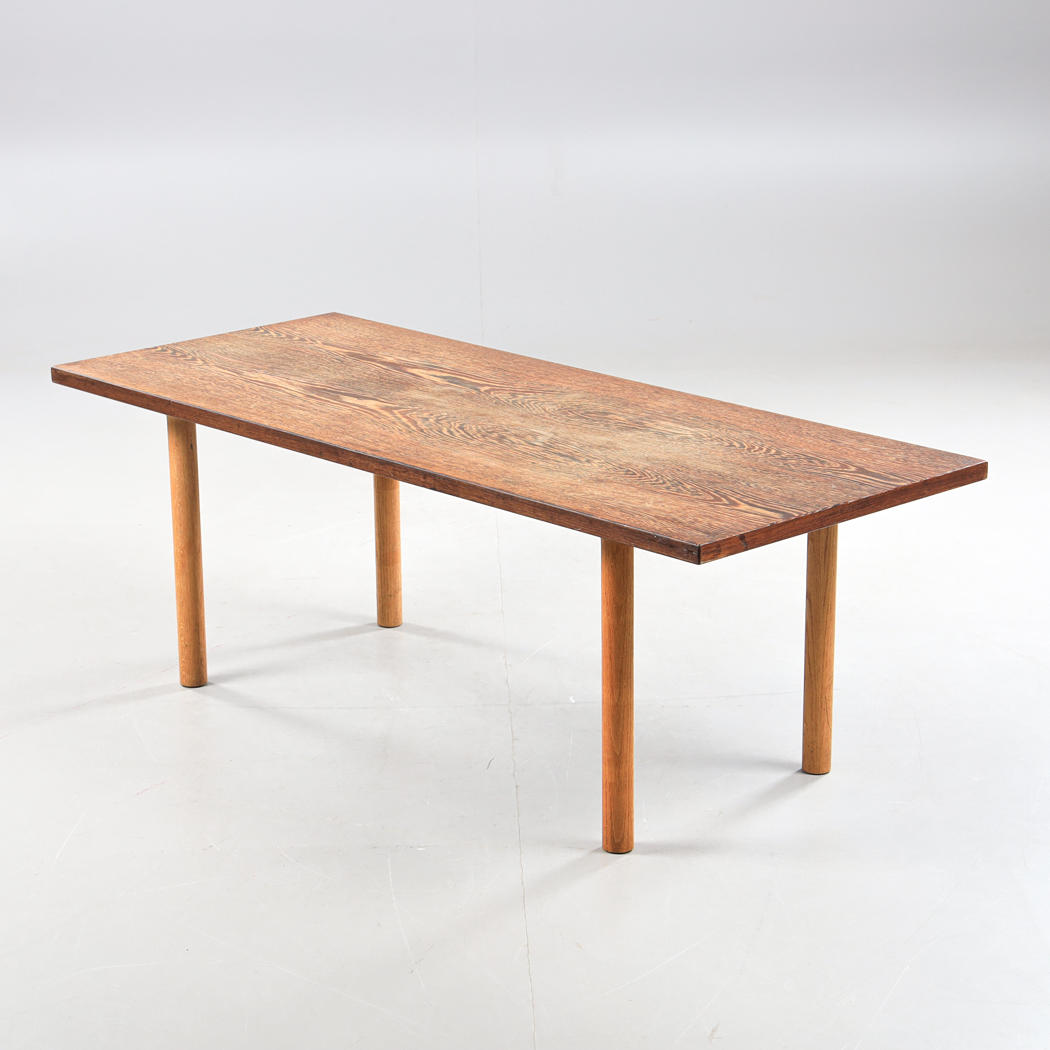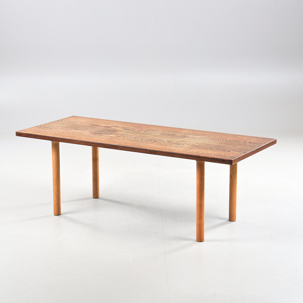 Skive fineret med wenge. Ben i eg. Mærkemærket. Længde 150, bredde 62, højde 53 cm.