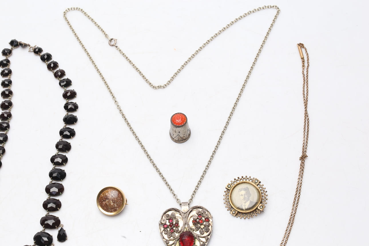 SMYKKE, 5 stk og en sølvfingerbøl.