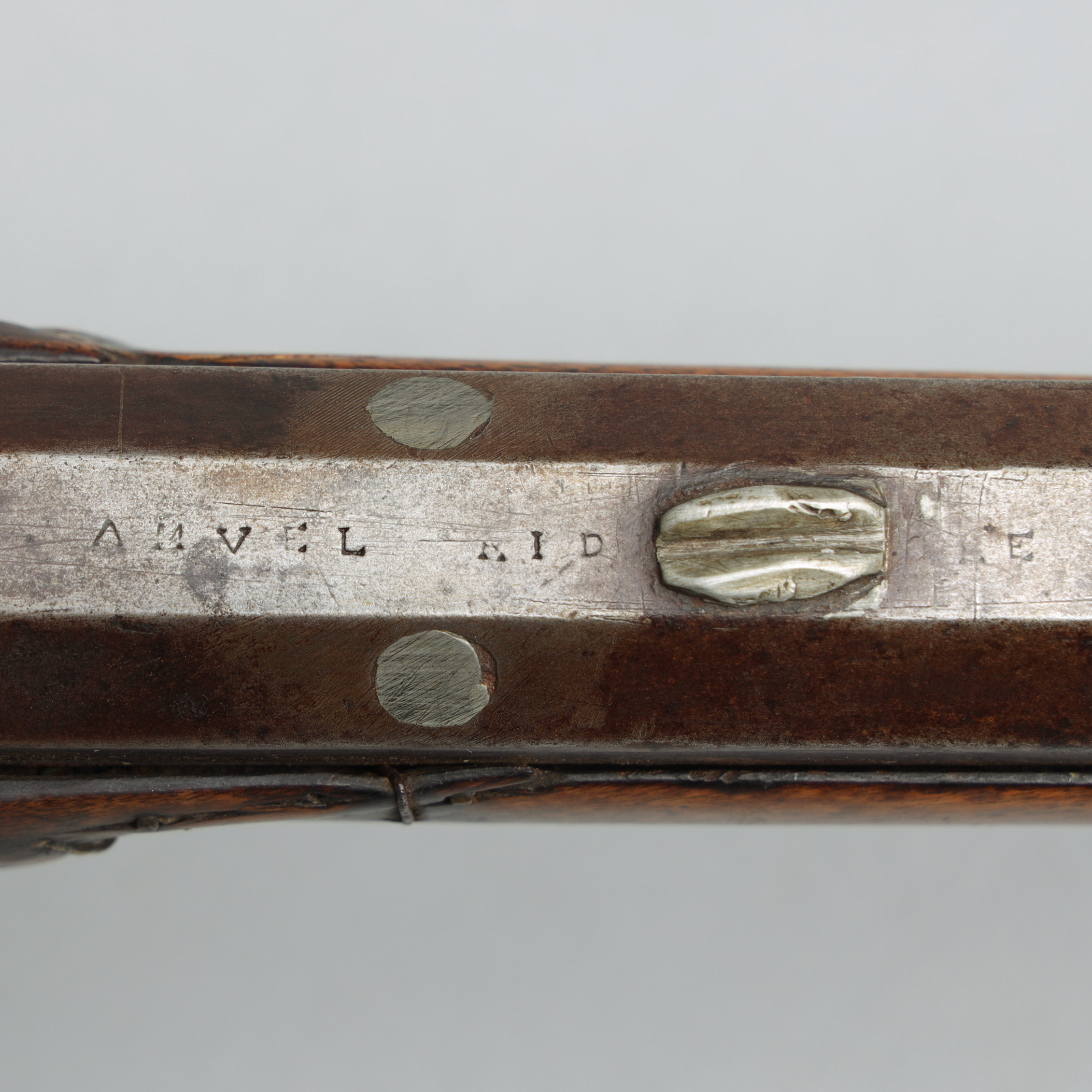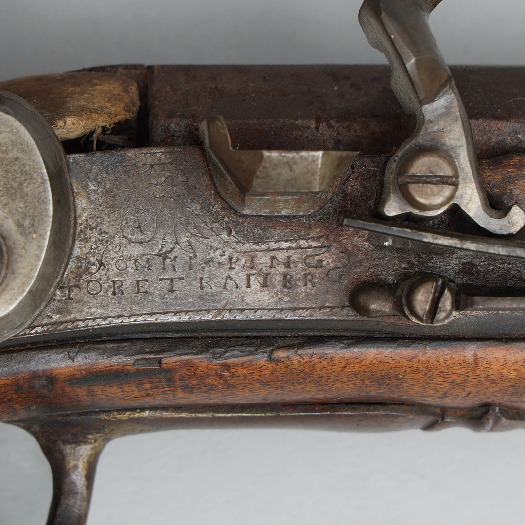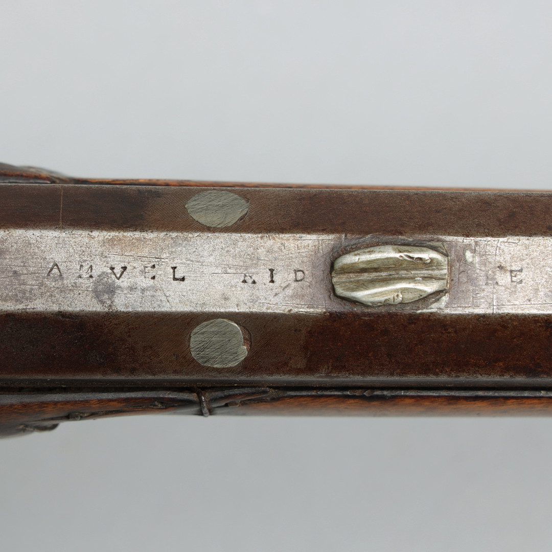 3146406. FLINT LOCK RIFLE, mærkning på låsen.