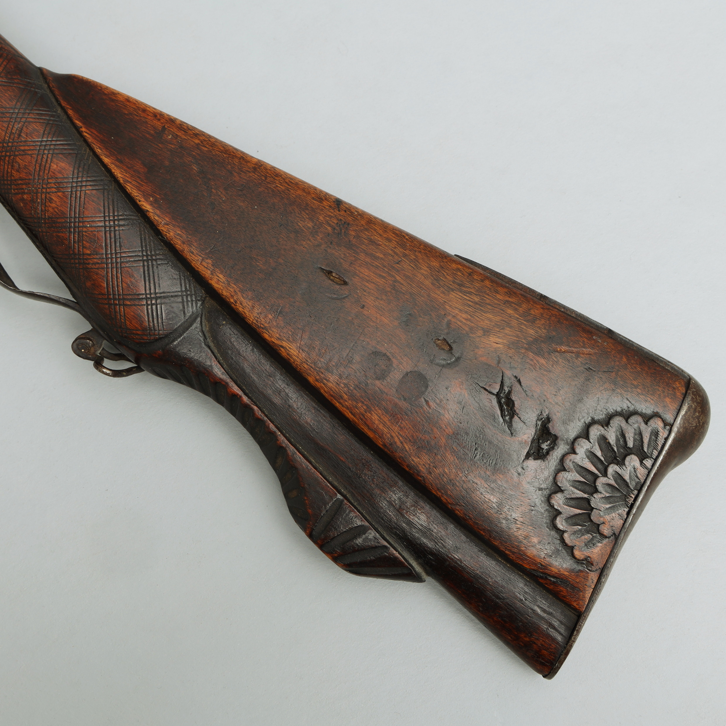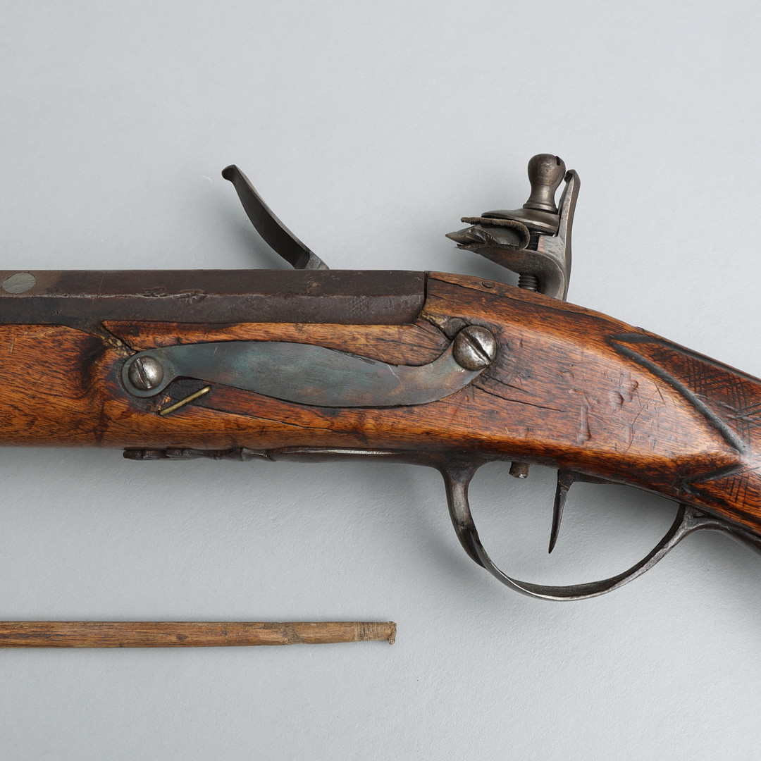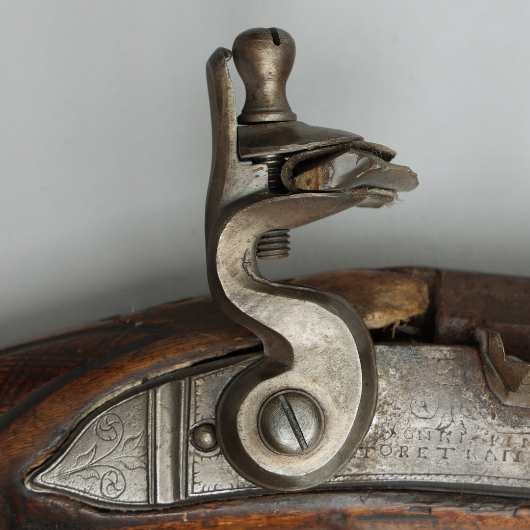 3146406. FLINT LOCK RIFLE, mærkning på låsen.