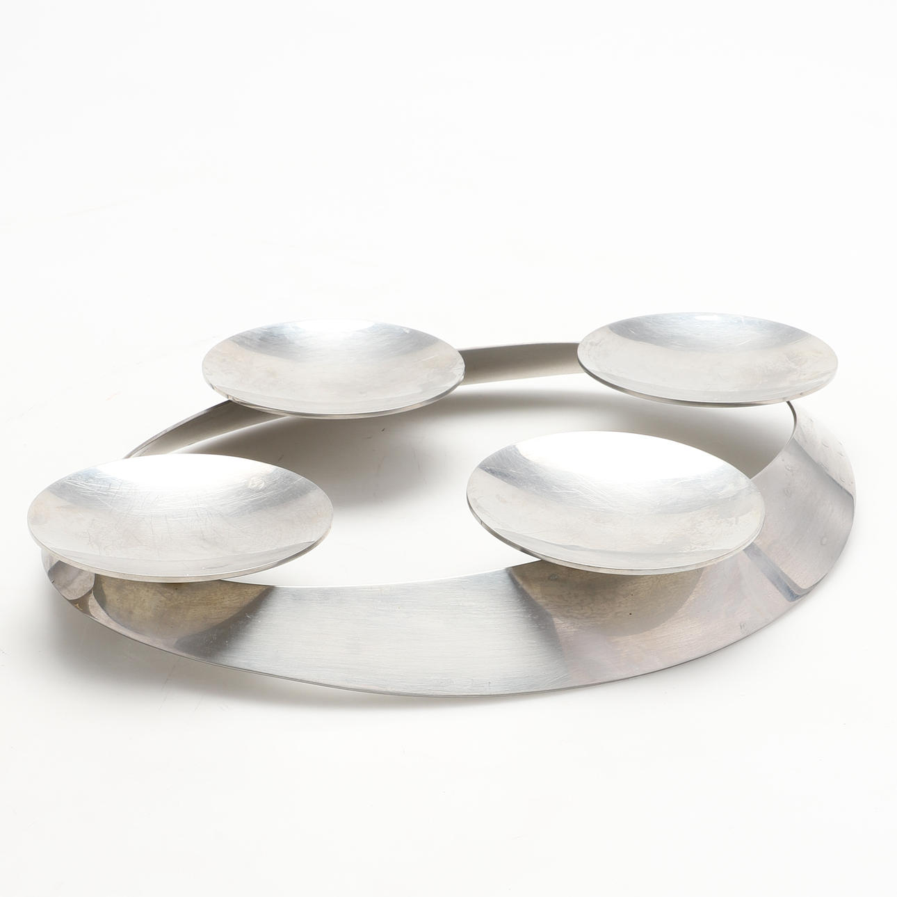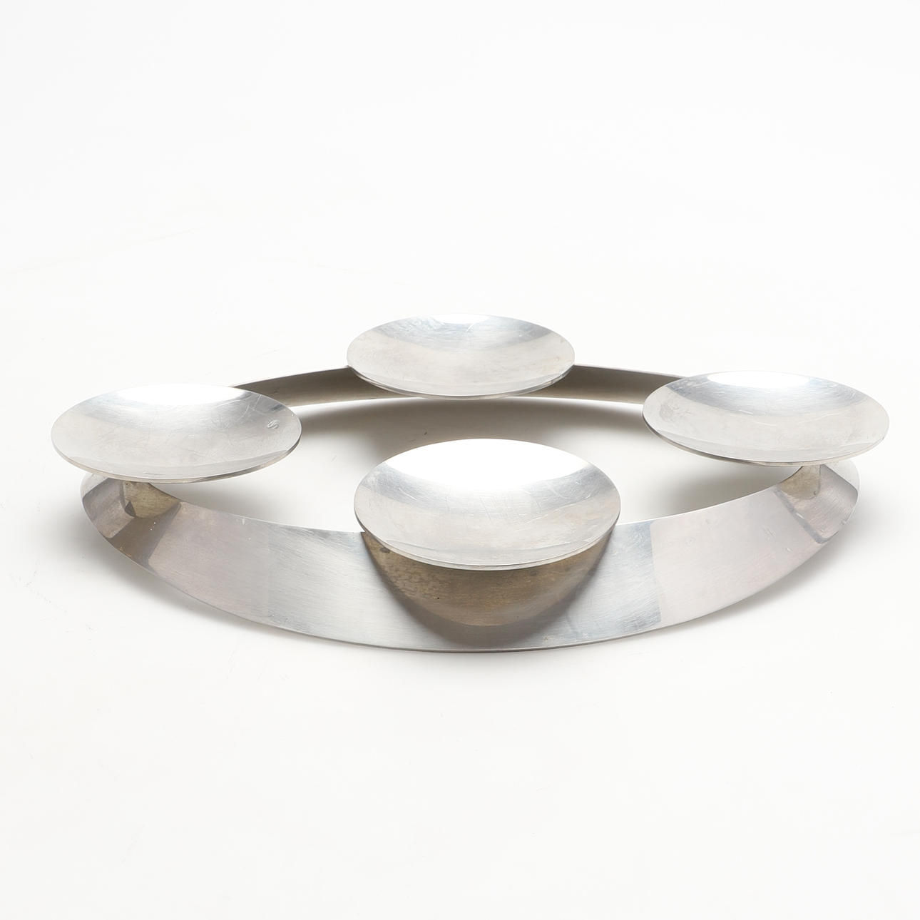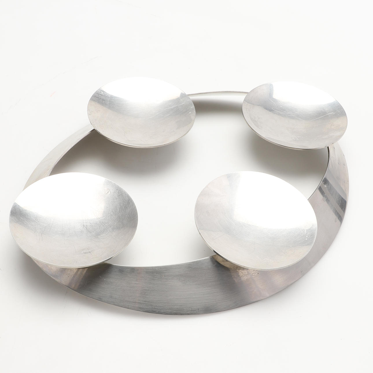 GEORGE JENSEN. LYSESTAGE TIL FIRE STEARINLYS, RUSTFRIT STÅL, DANMARK.