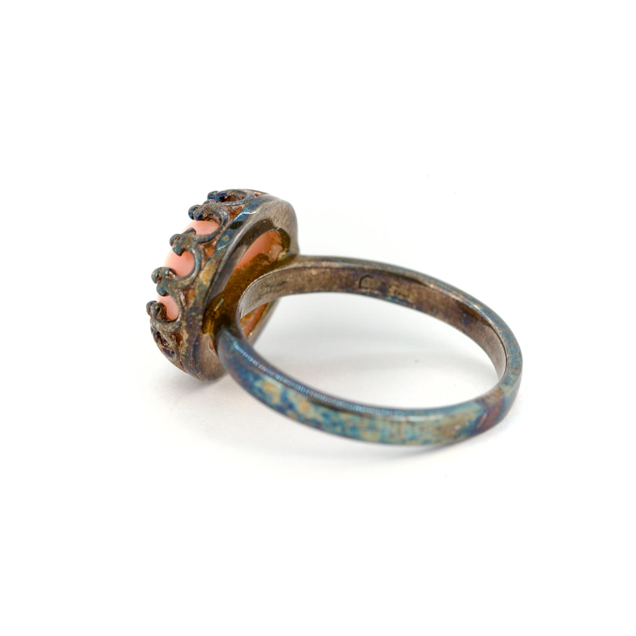 En ring af 925 sølv sæt med koraller, ring str. N.5.