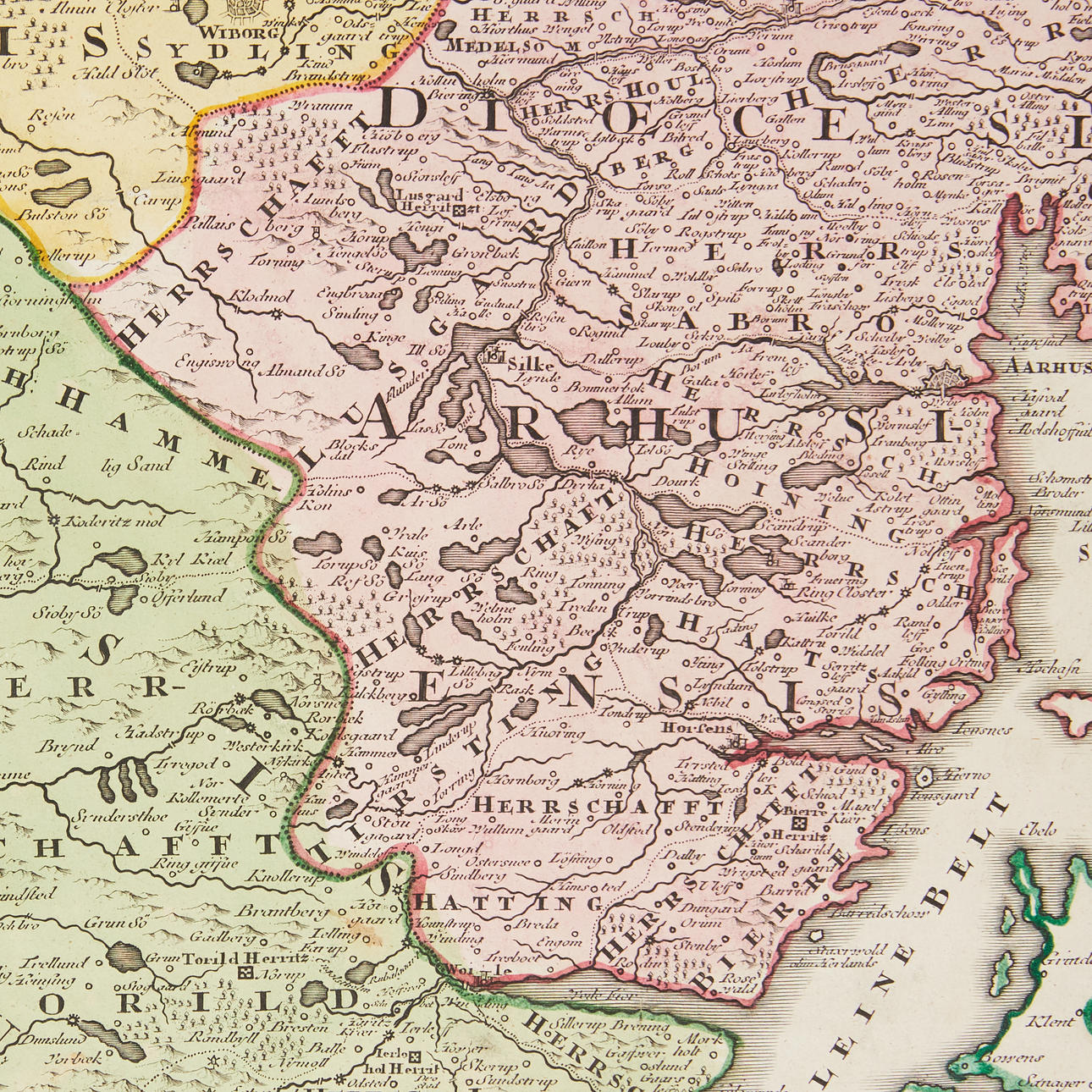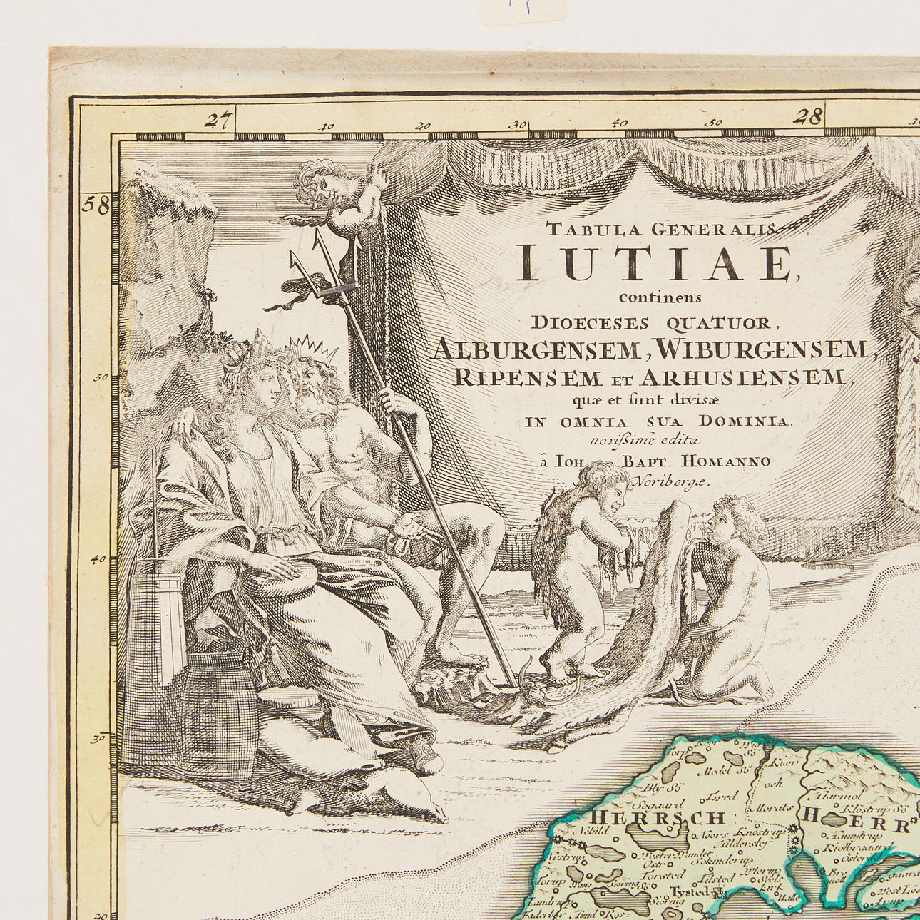 JYLLAND, Homann, J. B., Tabula generalis Iutiae..., Nürnberg, ca 1730, farvet indgraveret kort, ca. 58 x 49 cm.
