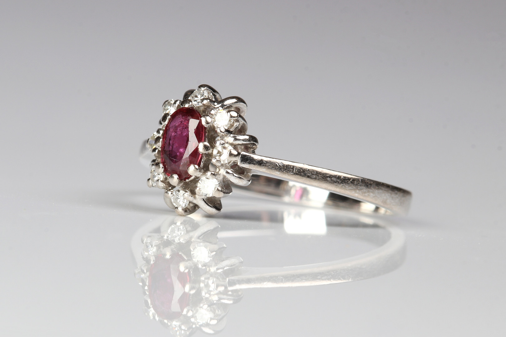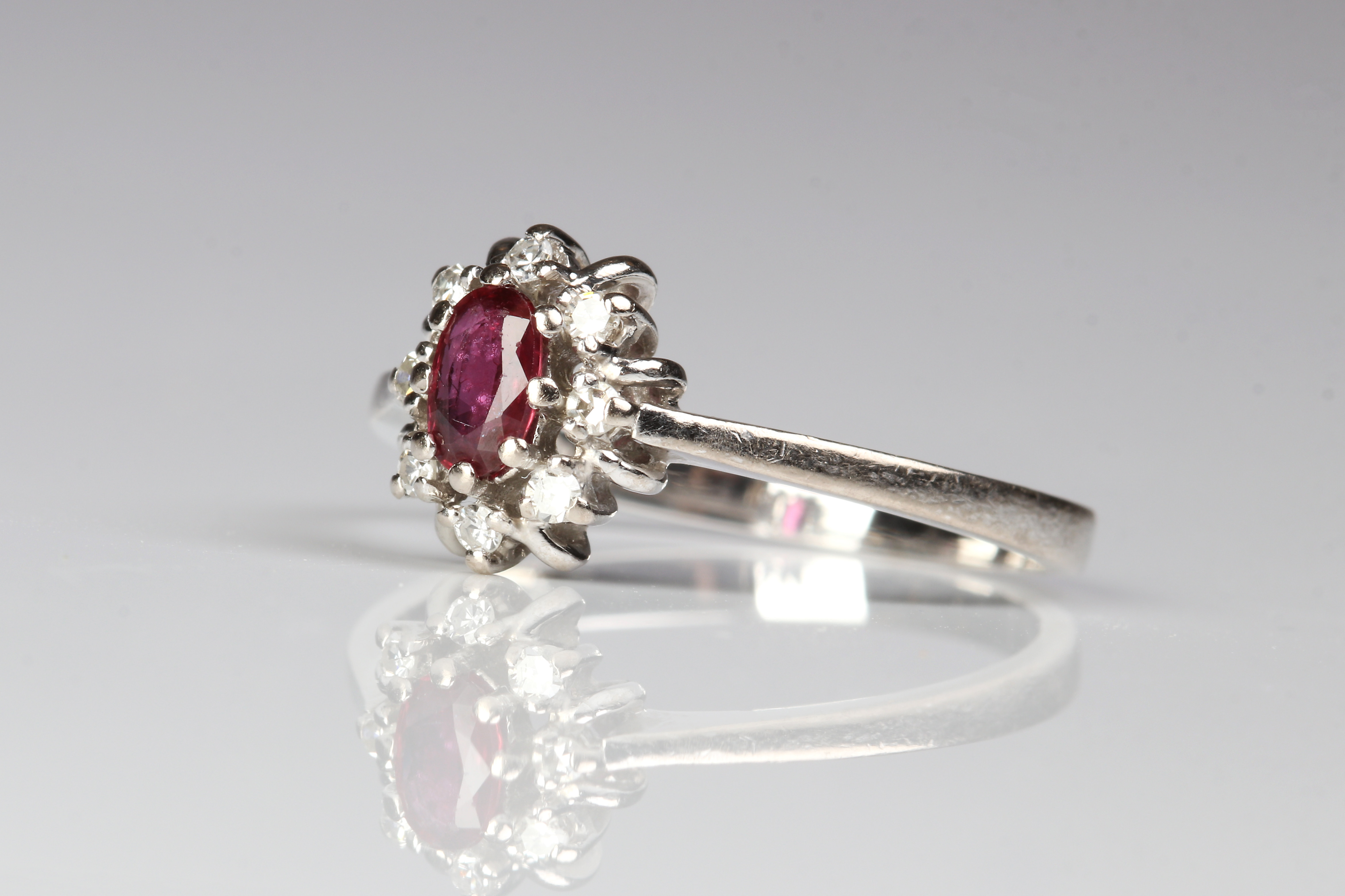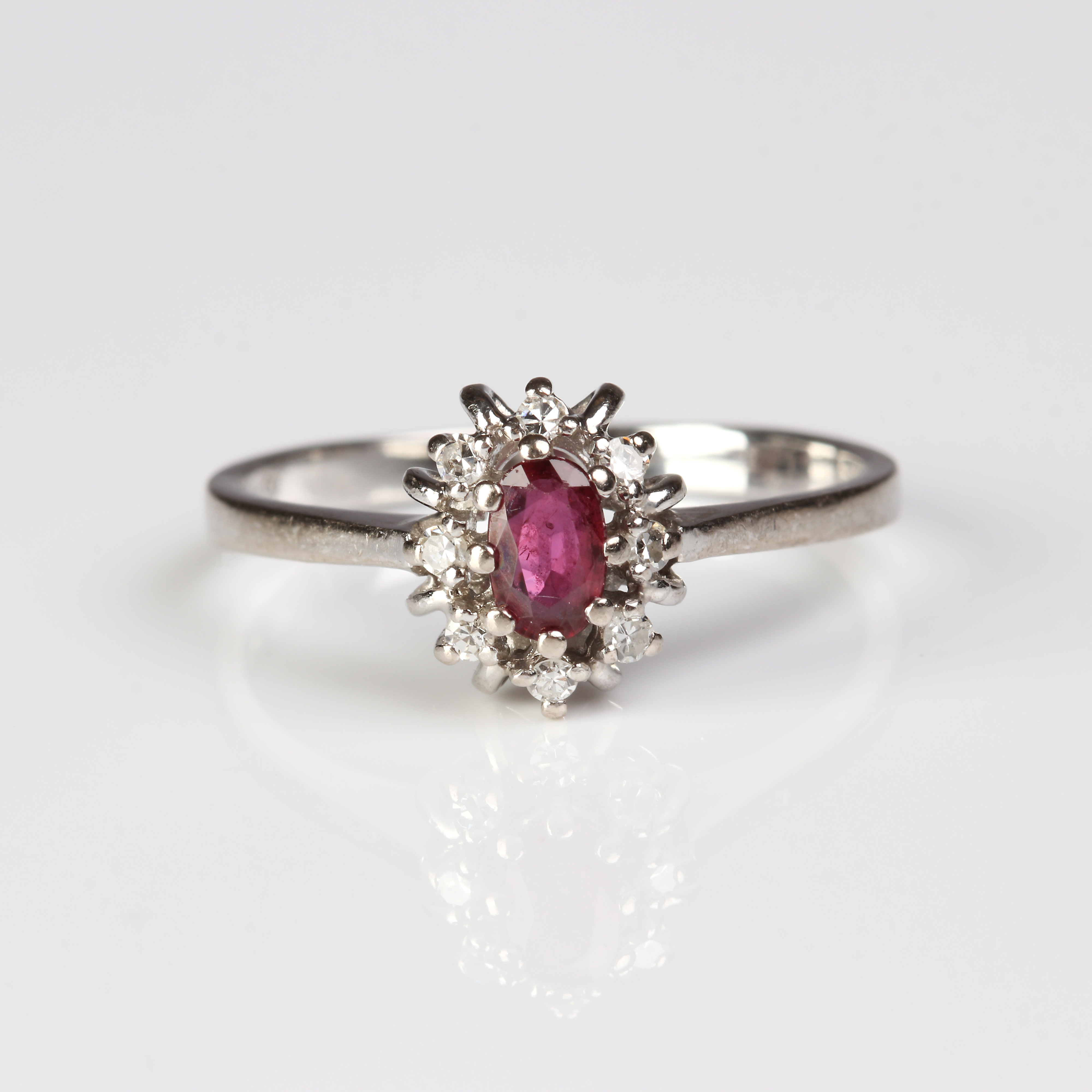 3161987. DIAMANT OG RUBIN RING, 18 kt hvidguld.