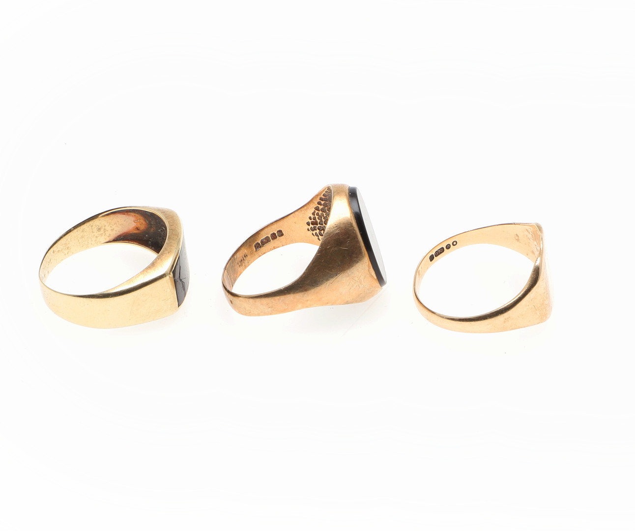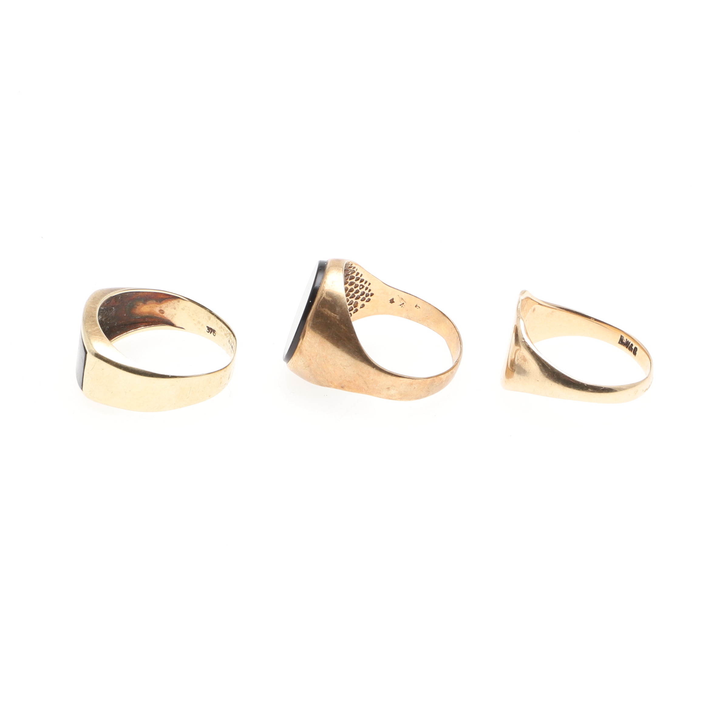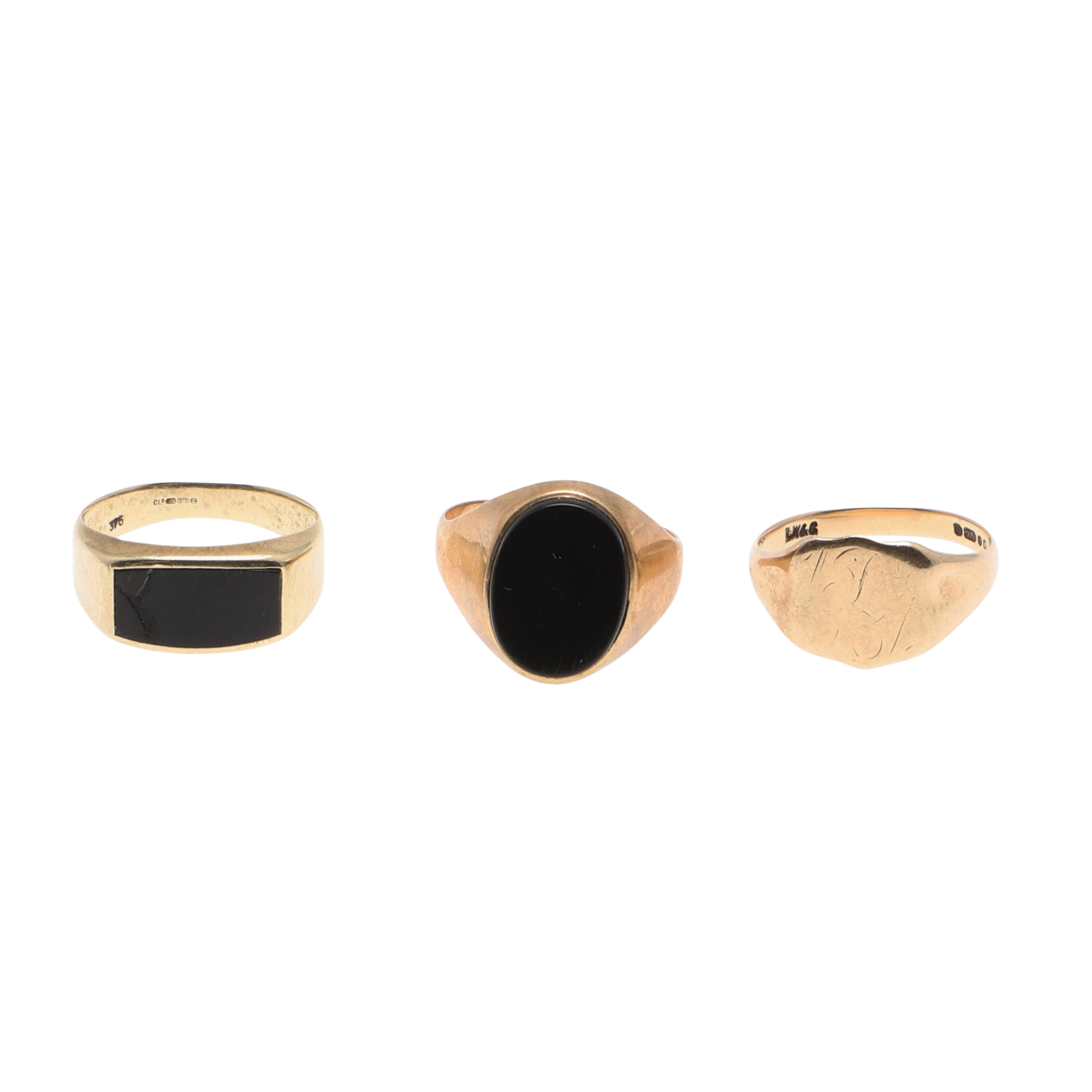 3162686. TRE 9CT GULD SIGNETRINGE.