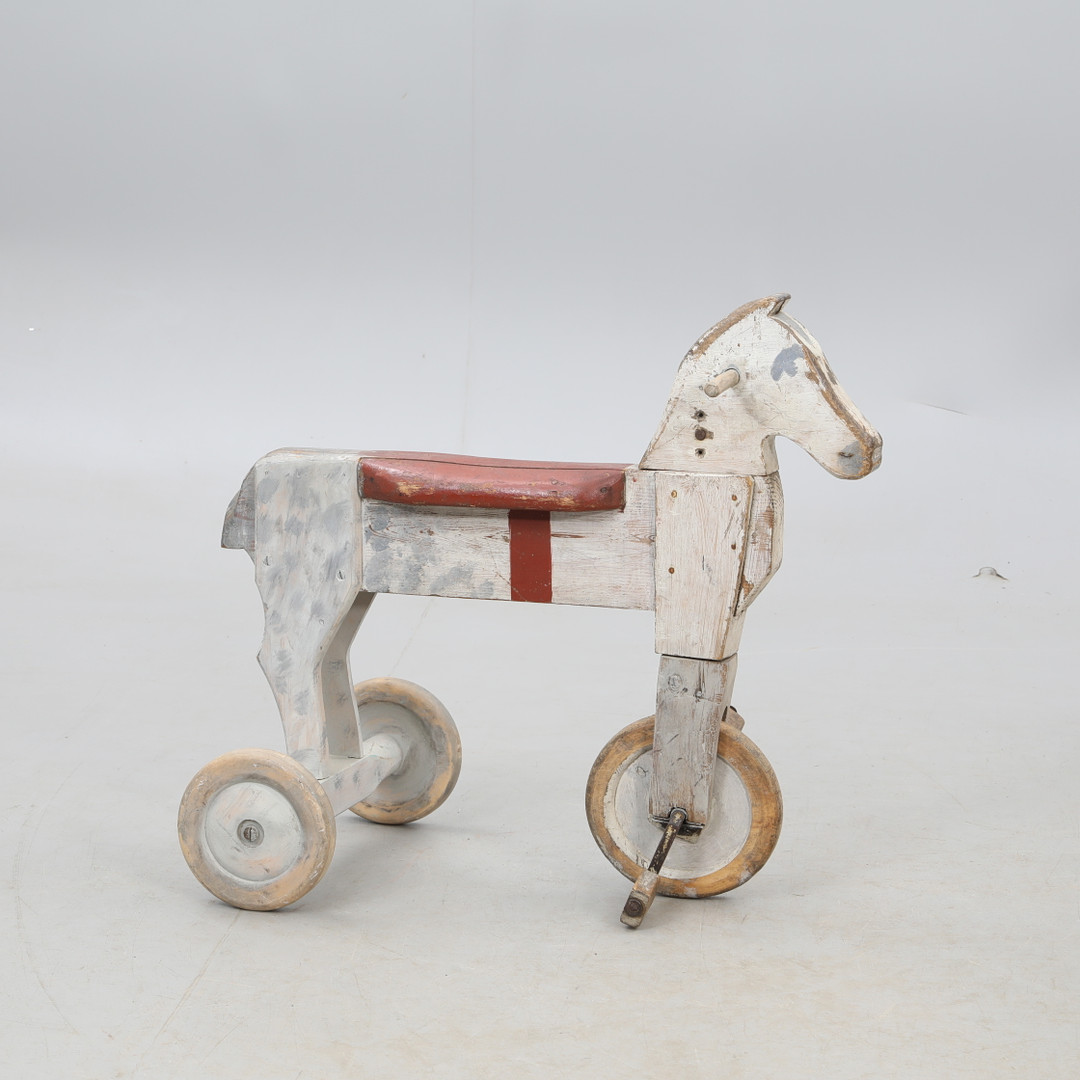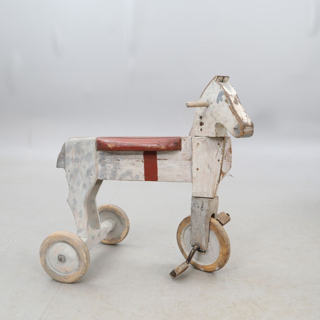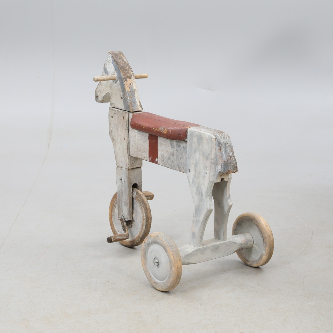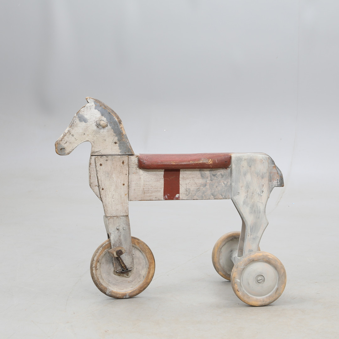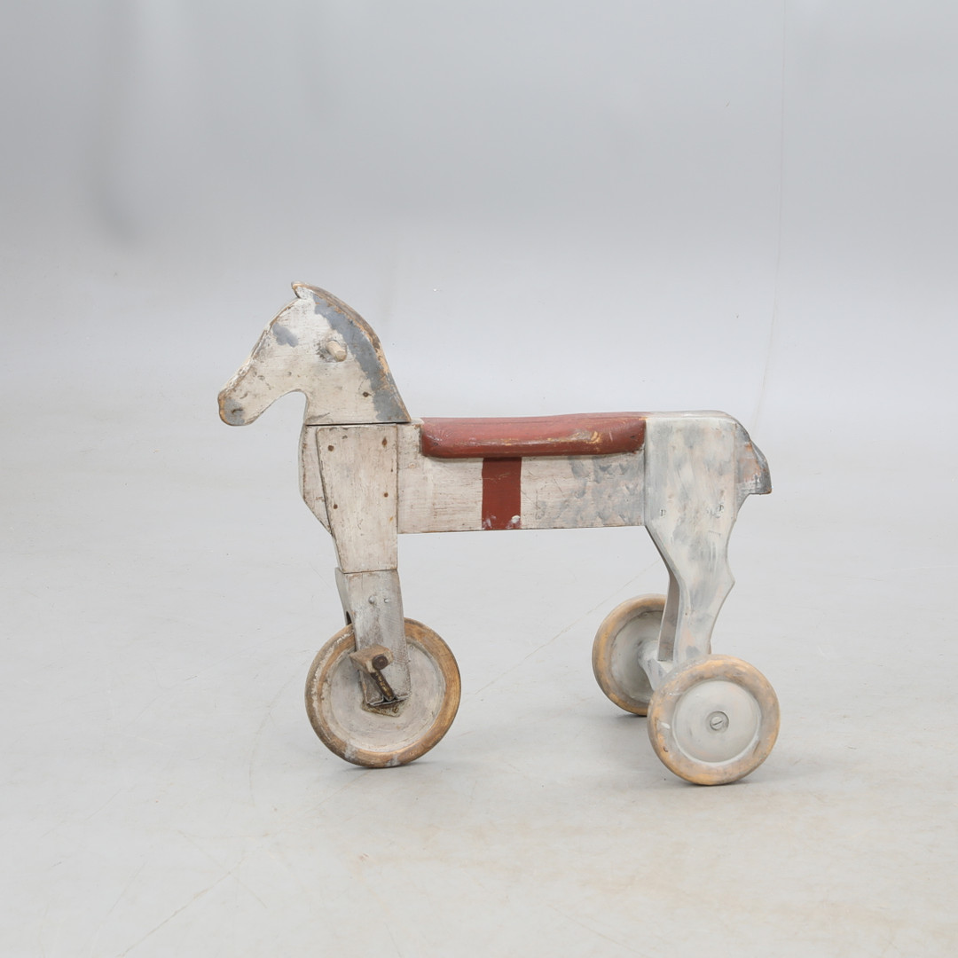 3164070. LEGETØJSHEST, på hjul, træ.