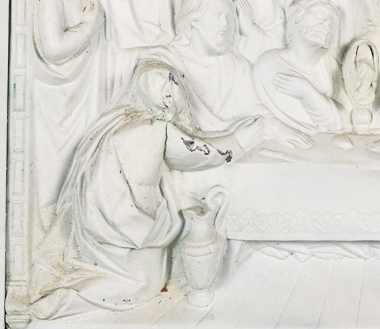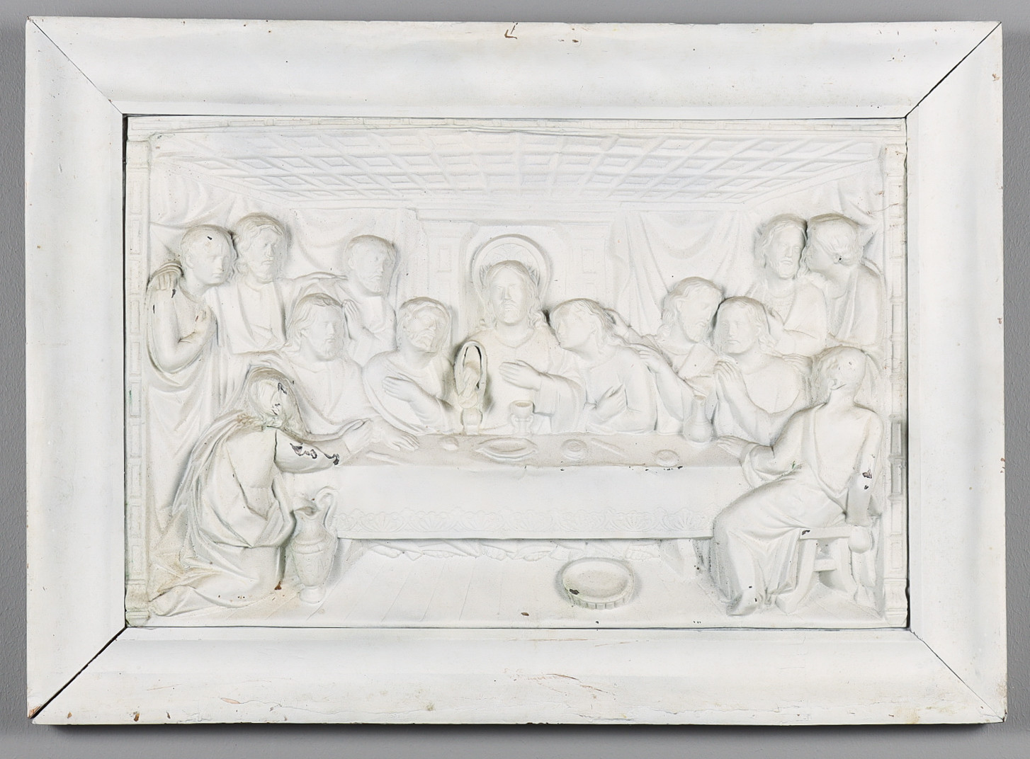 3165535. VÆGRELIEFMALET PLADE, Kommunion.