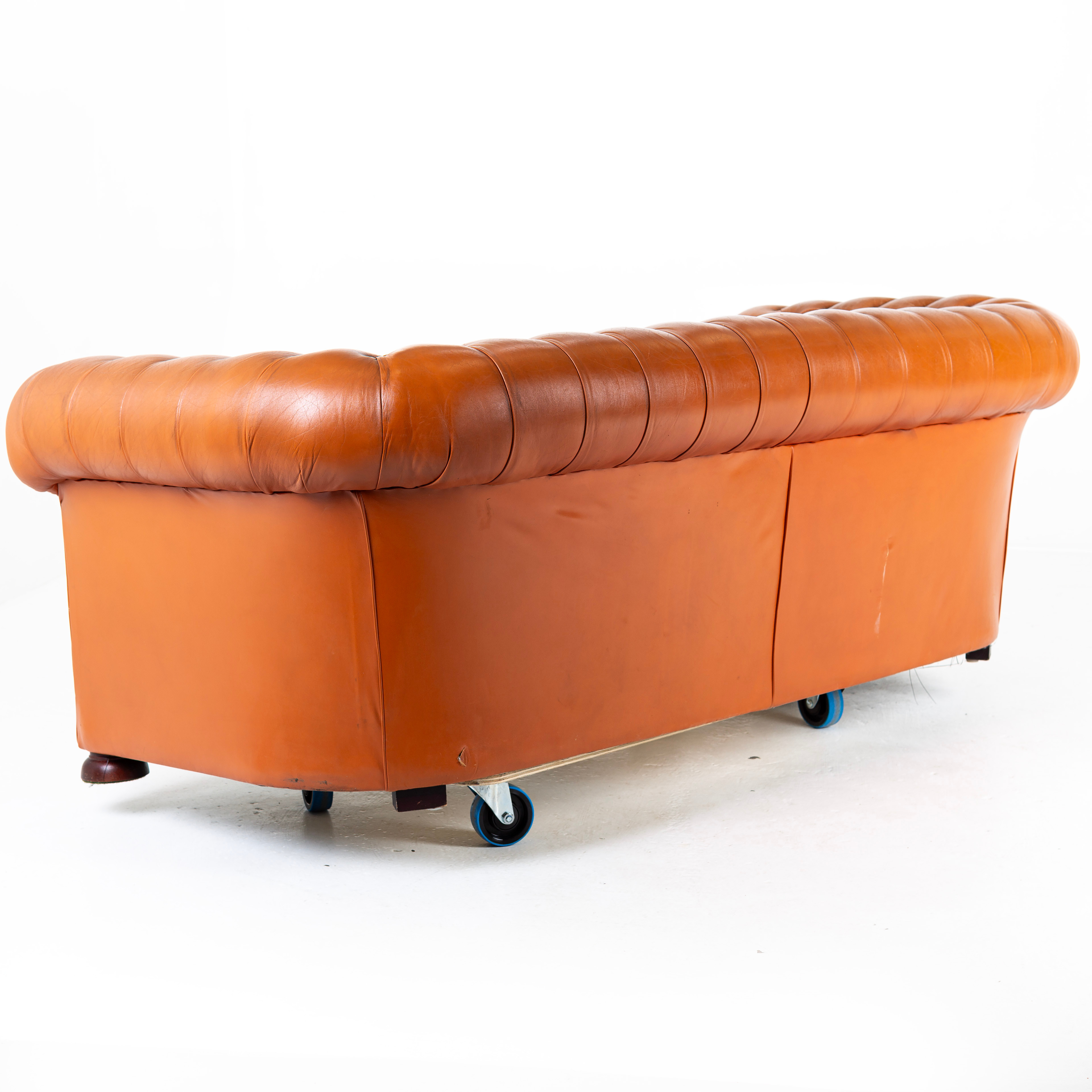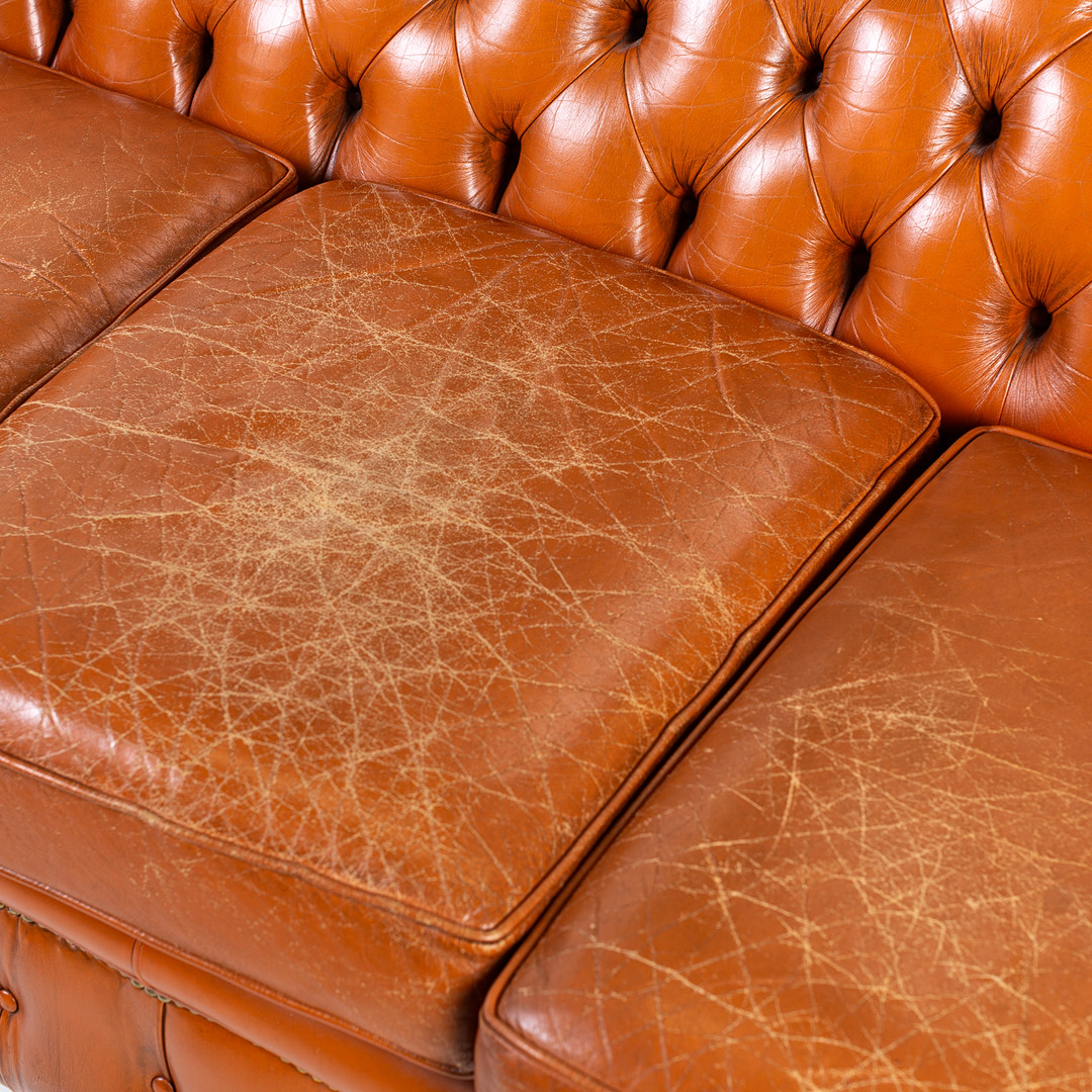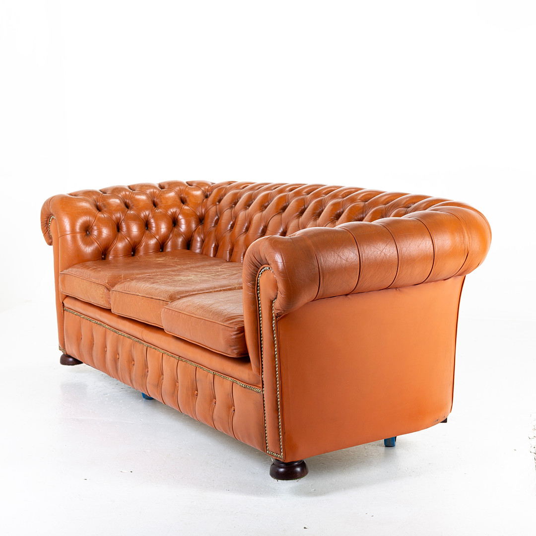 3168808. SOFA, 3 - sæde, læder, Chesterfield.
