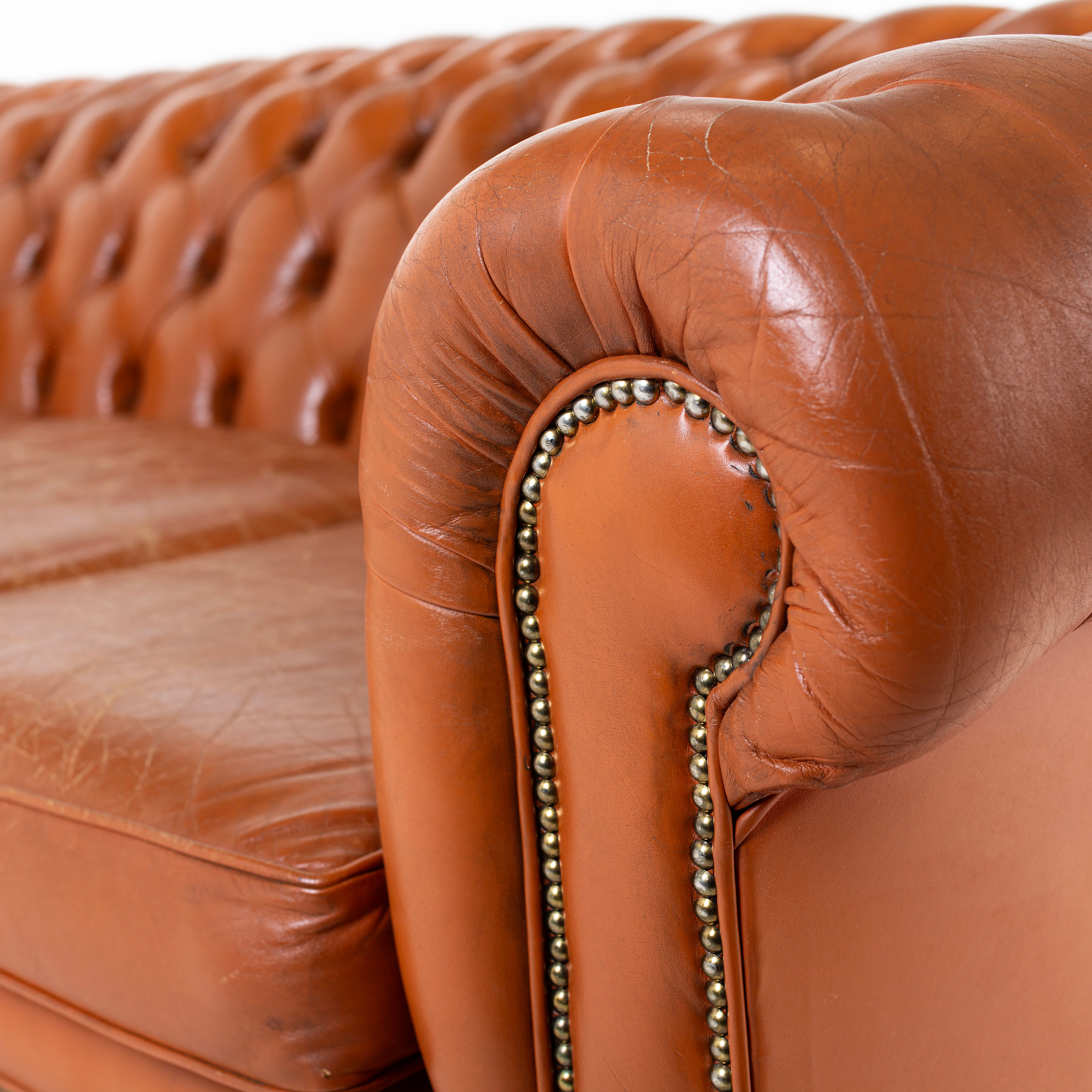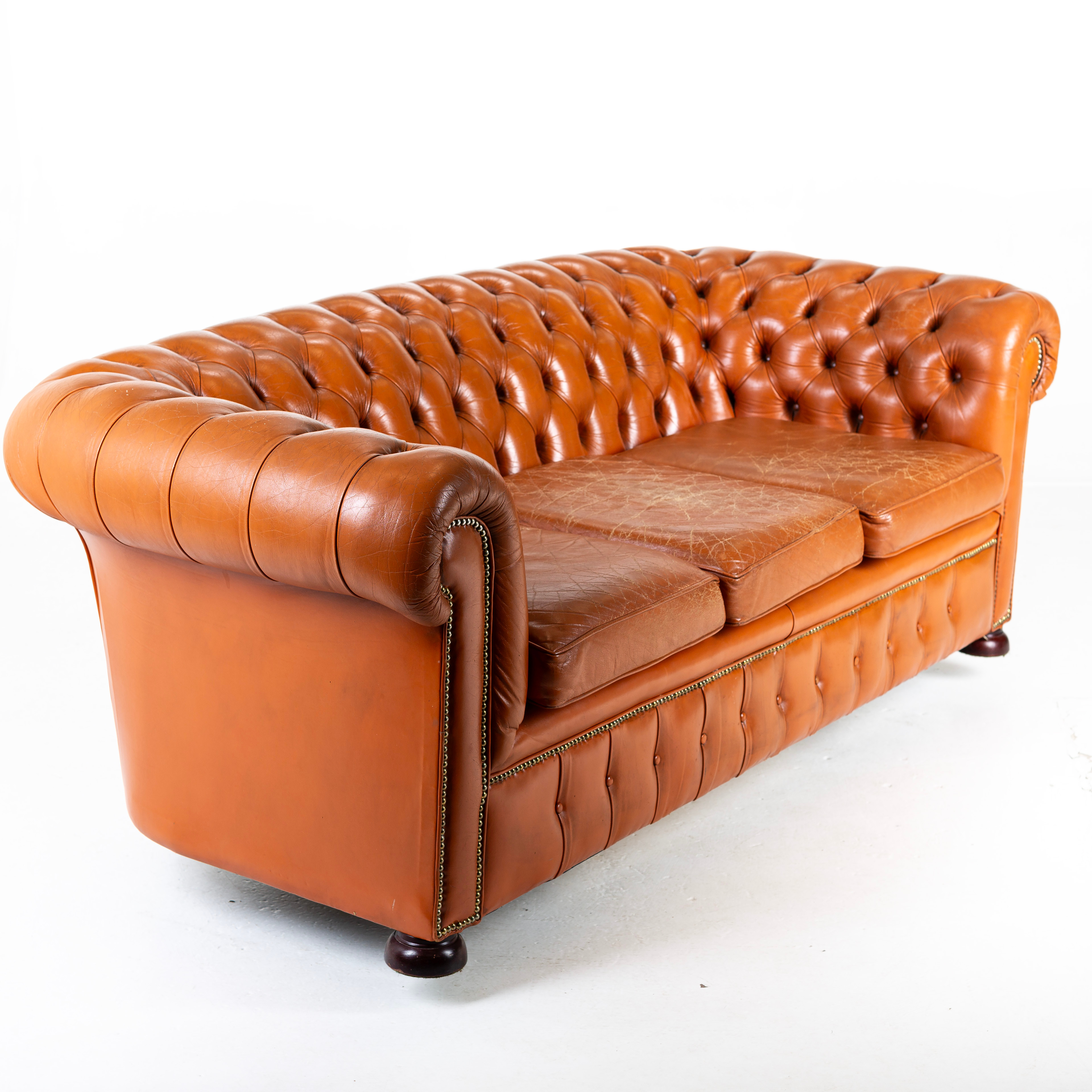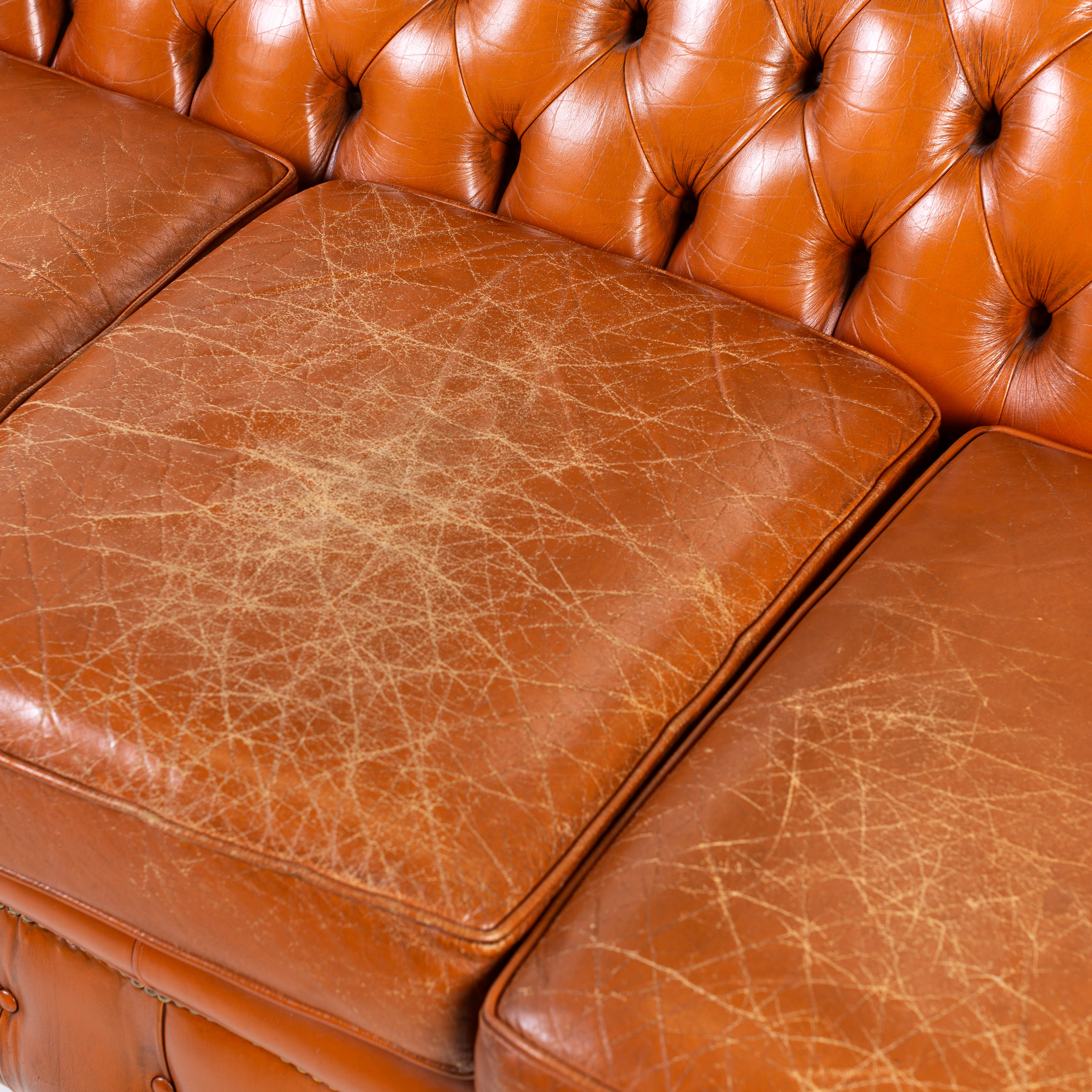 3168808. SOFA, 3 - sæde, læder, Chesterfield.