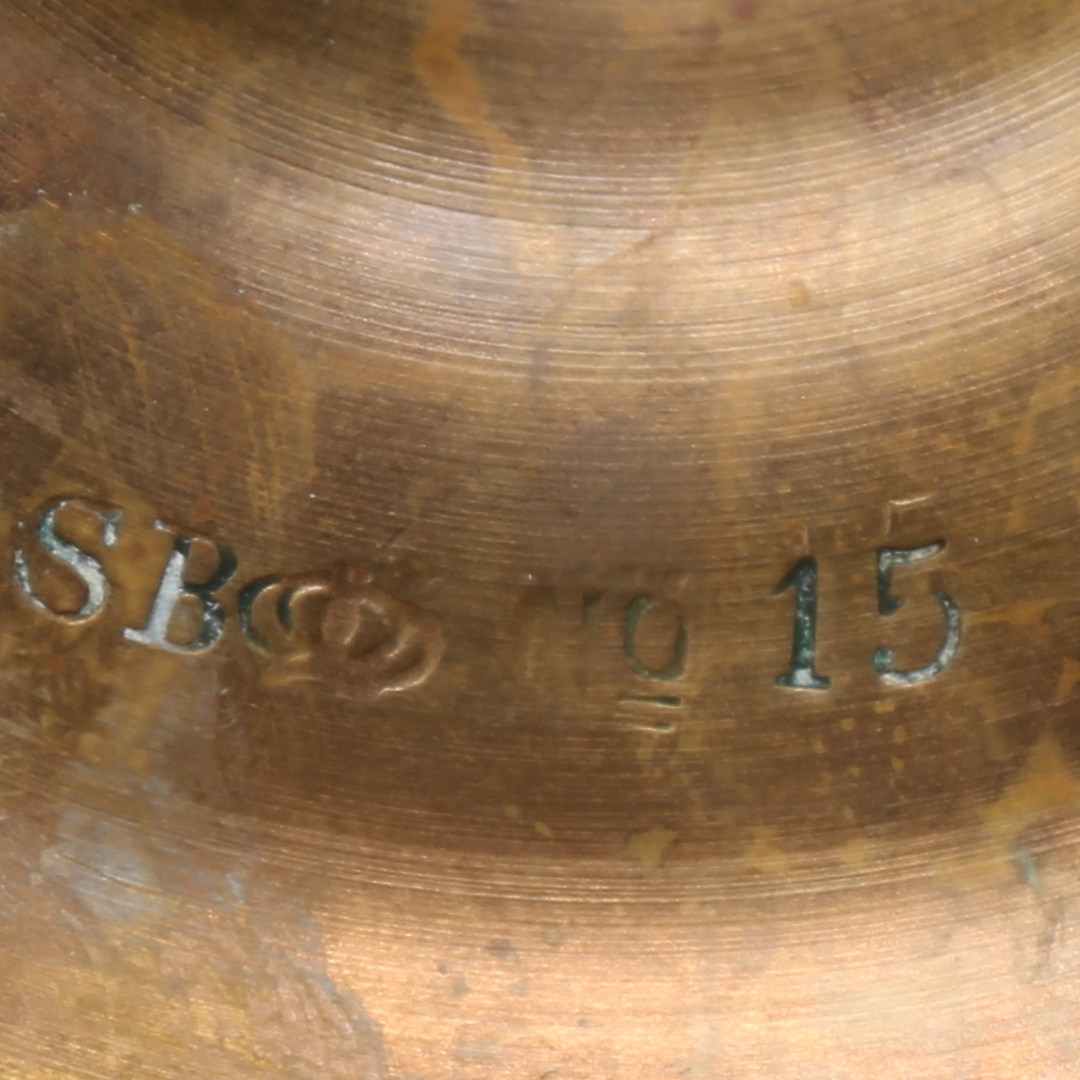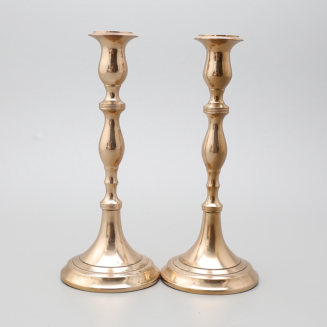 316955. Lysestager, 5 par, messing, malm, 1900-tallet.